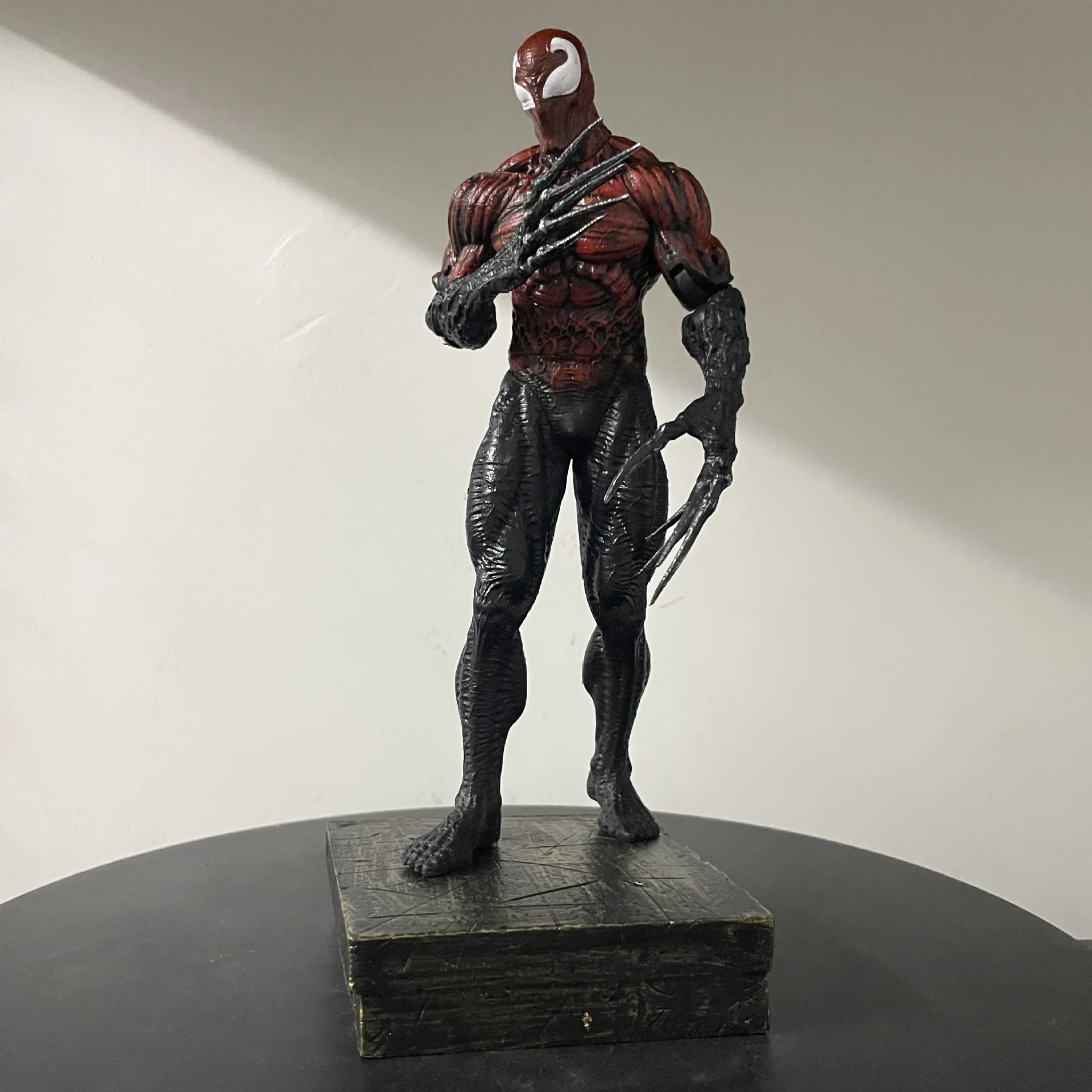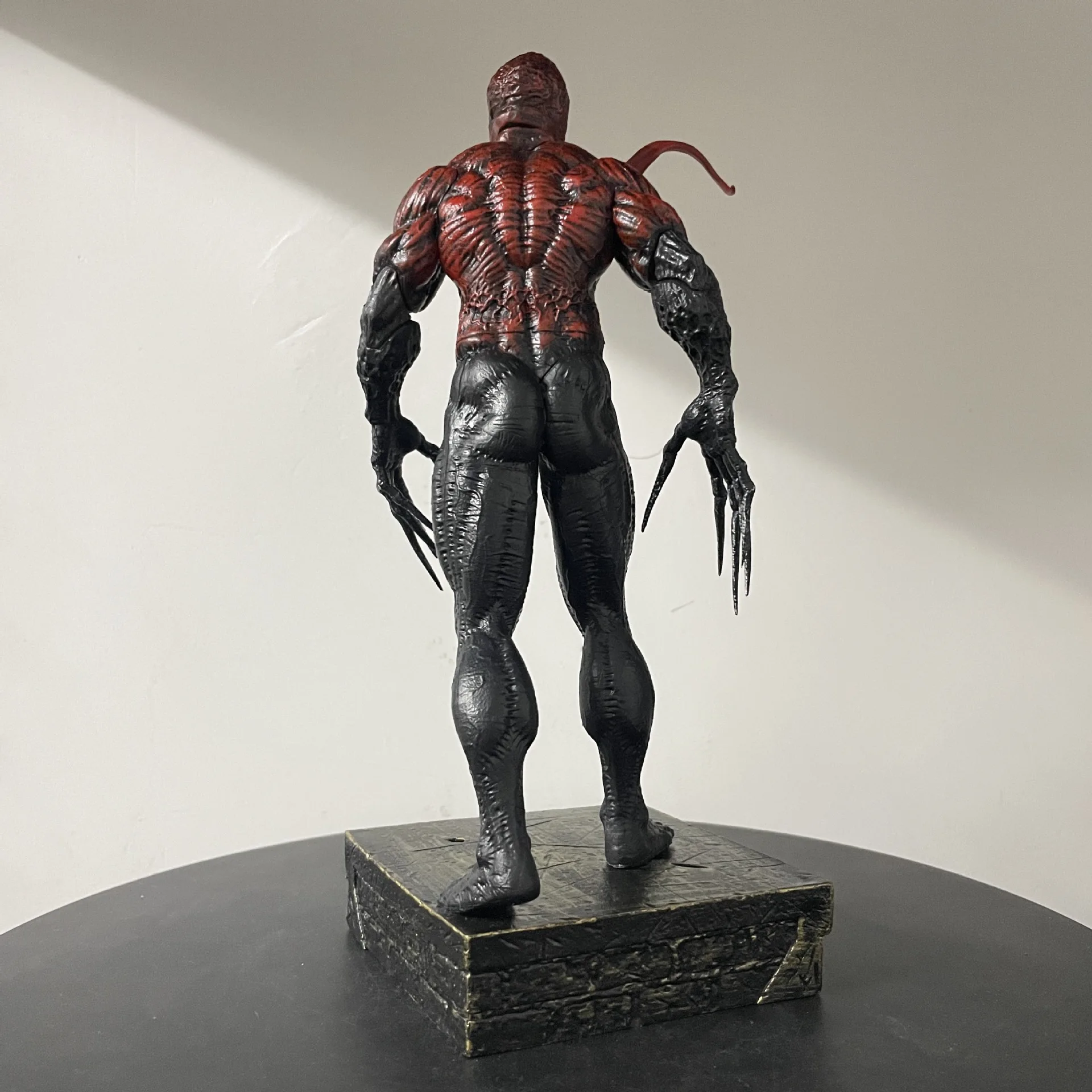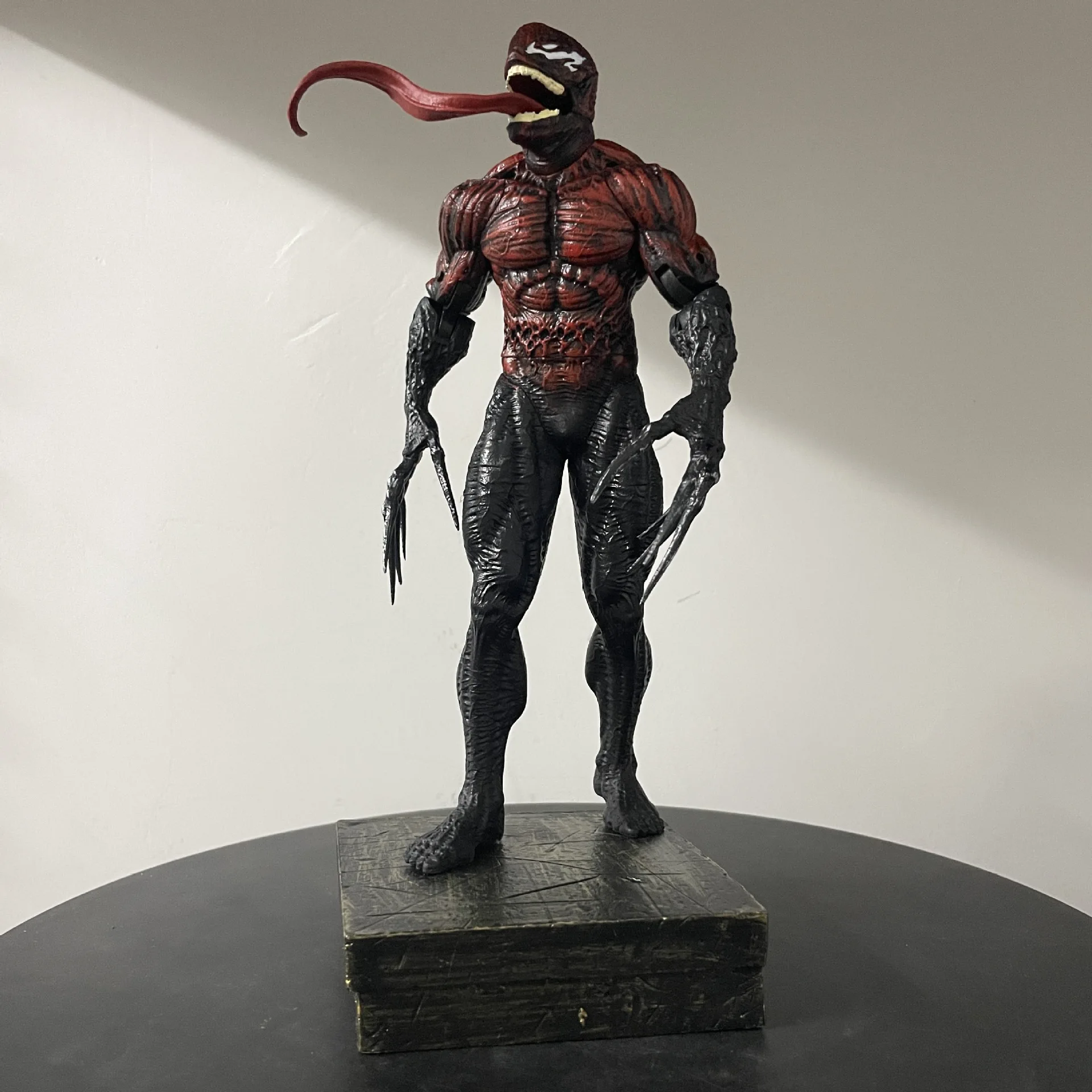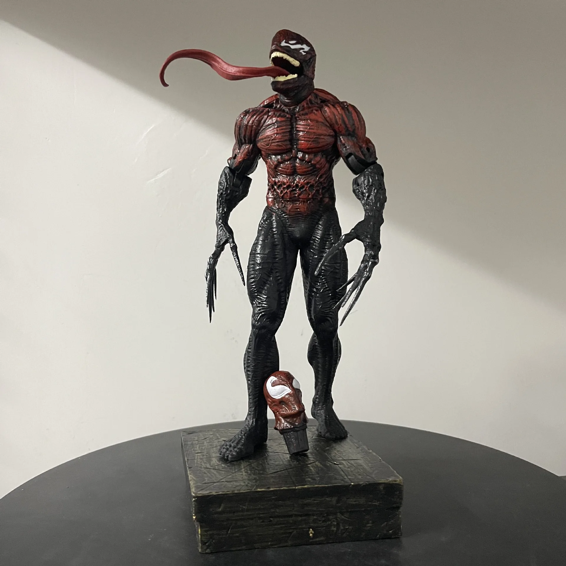 The two replaceable head carvings allow you to customize the figure's look. One head can capture Venom’s angry, monstrous expression, while the other head can convey his more sinister, menacing grin. These interchangeable heads make the figure even more dynamic and versatile, letting you switch between expressions depending on your mood or display preference.