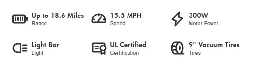 - The 300W motor reaches up to 15.5mph, which is ideal for smooth city cruising