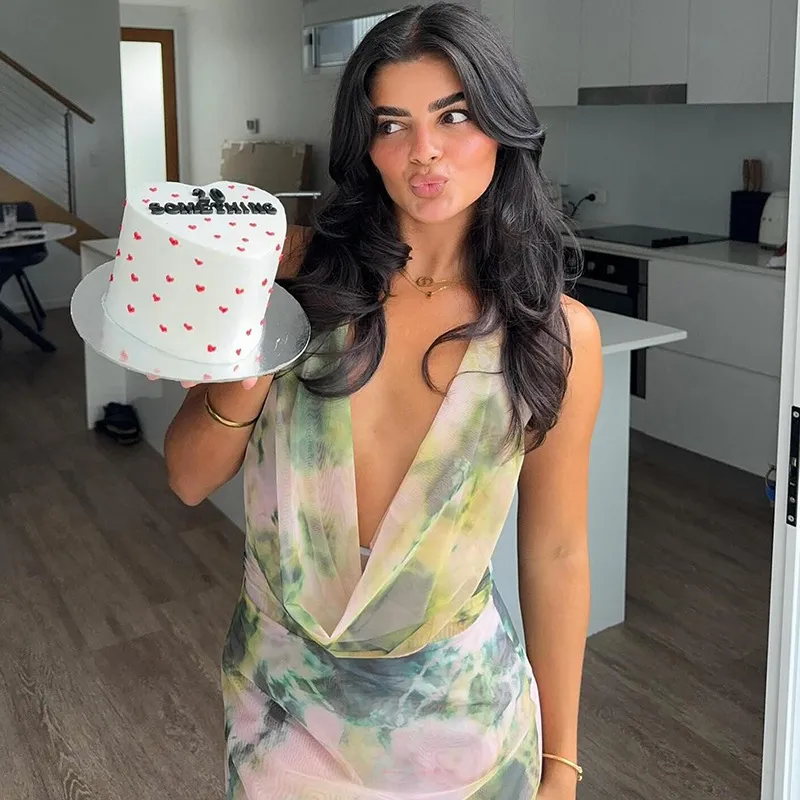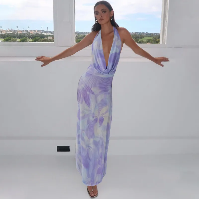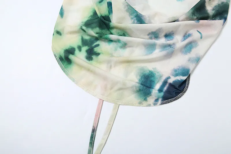 2pcs Tie Dye Printing Deep V-neck Suits Fashion Halter Backless Long Dresses For Beach Party Womens Clothing