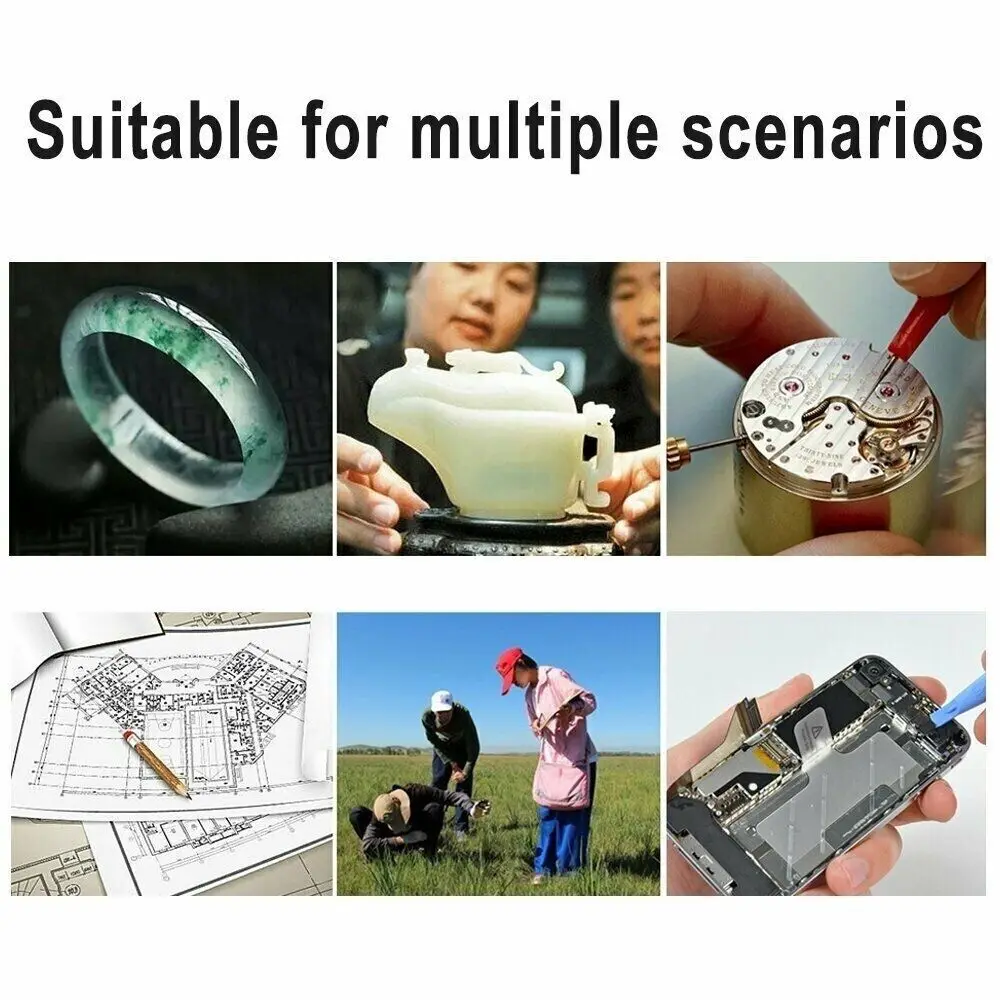 This magnifying loupe is ideal for both professional jewelers, watchmakers, and repair specialists, as well as hobbyists and DIY enthusiasts. It is perfect for anyone needing clear, magnified views of small objects for tasks such as soldering, inspection, assembling models, or intricate crafting.
