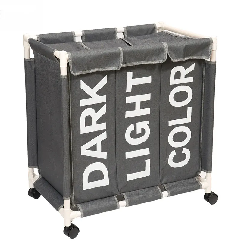 laundry into three convenient sections, making sorting and organizing a breeze. Whether you're sorting clothes by color, fabric type, or