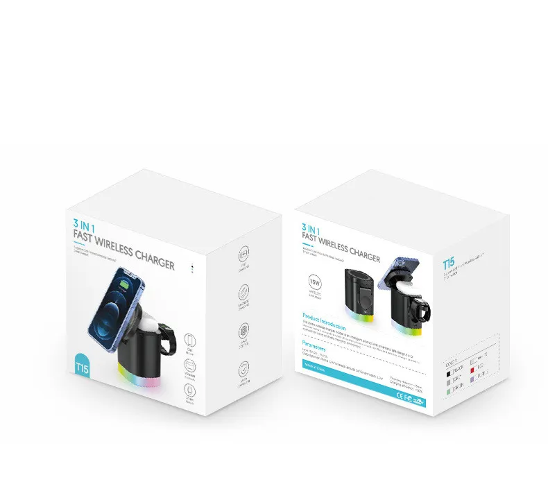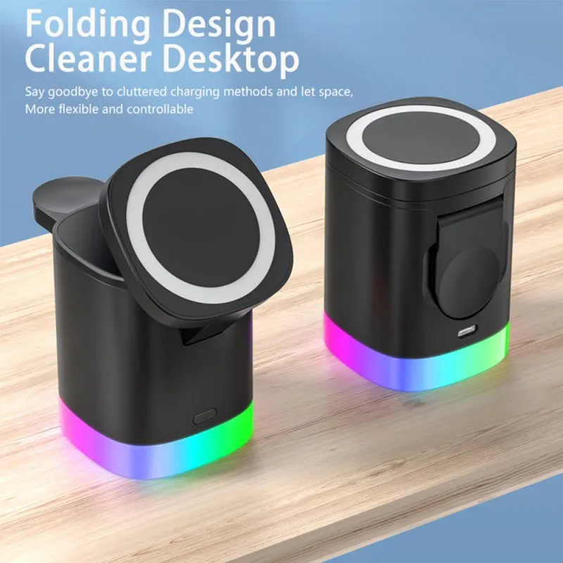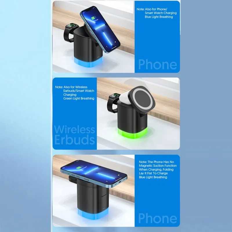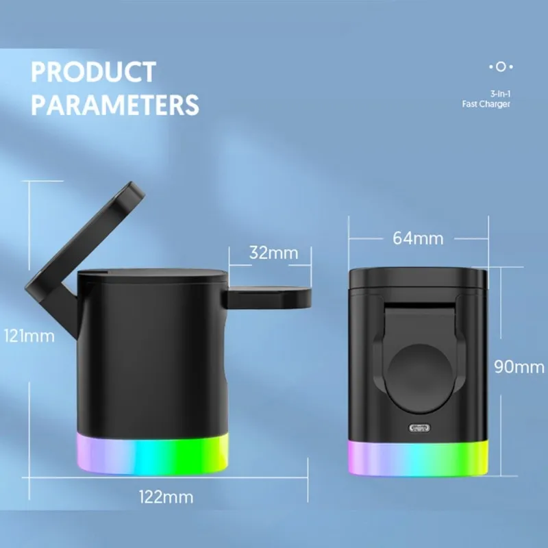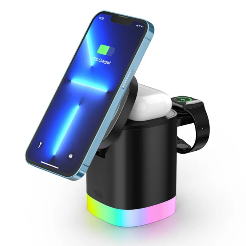 3 In 1 Magnetic Wireless Fast Charger For Smart Phone RGB Ambient Light Charging Station