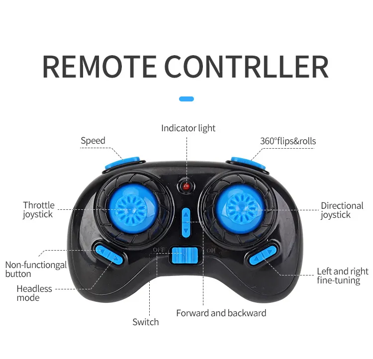 1. Flight mode: forward and backward, fly left, fly right, rotate left, rotate right, 360° roll function, fine adjustment of front, back,