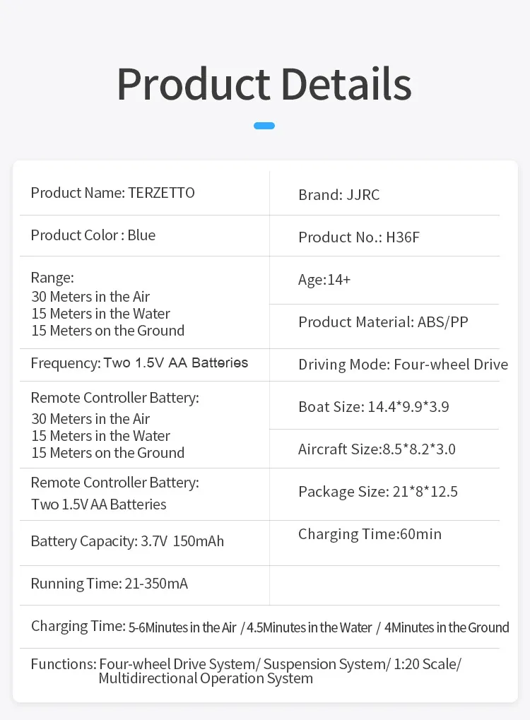 - Three Modes: Air, land, and water modes for versatile, all-terrain play.