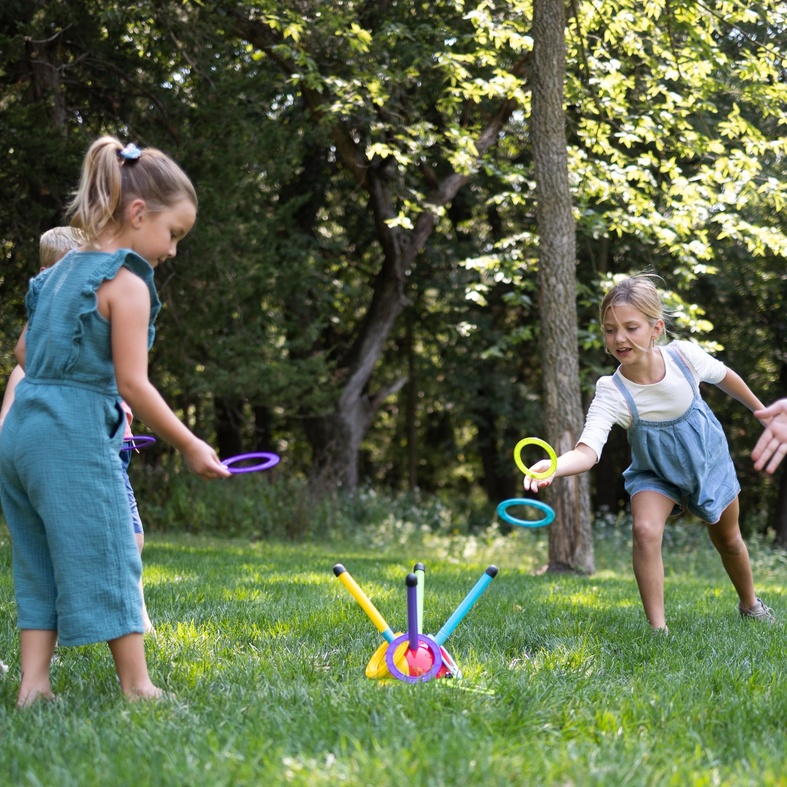 SPINNING POLE-HOPPING GAMEÂ that transforms into a spinning ring-toss game; endless active fun!