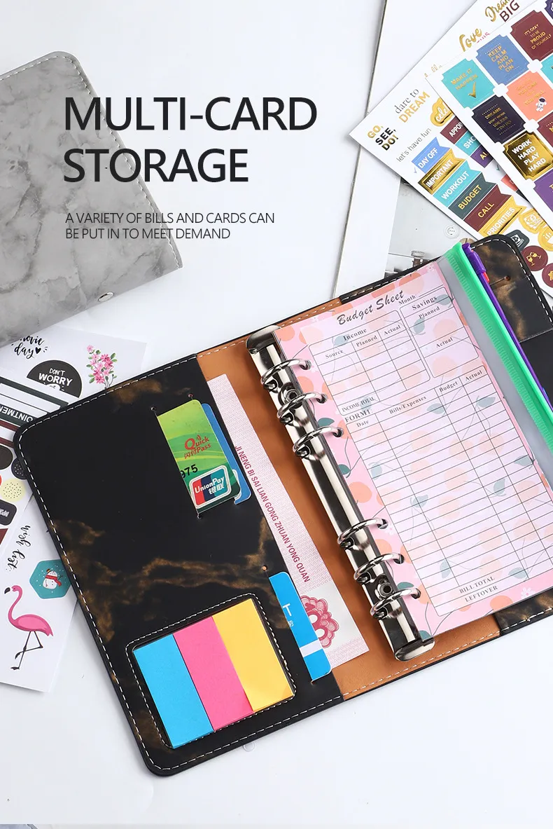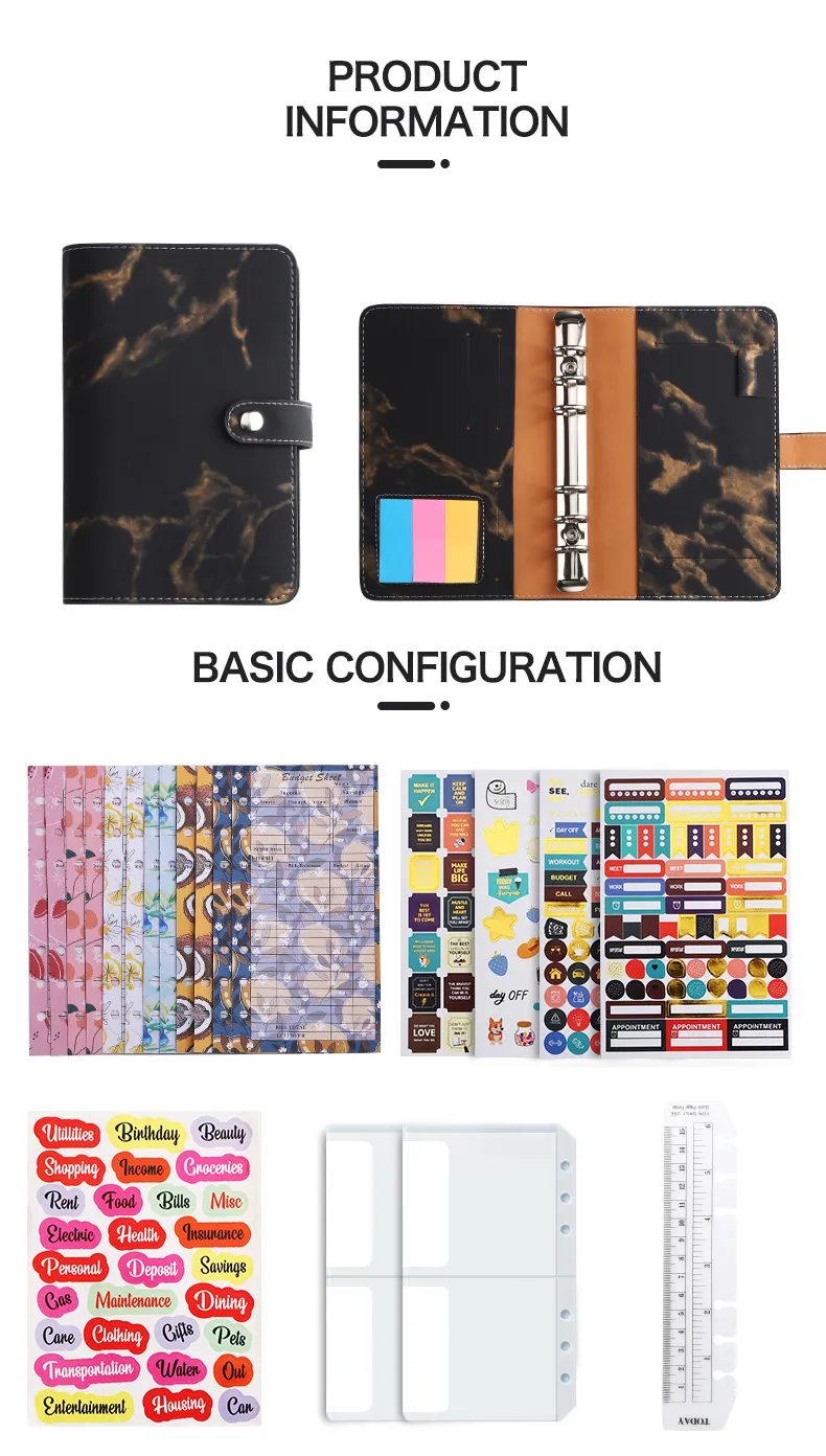 1*notebook+Bronzing sticker *4+ English sticker *1+ transparent ruler *1+ card bag *2+ Post-it note *1+ budget sheet *12+ zipper bag *12