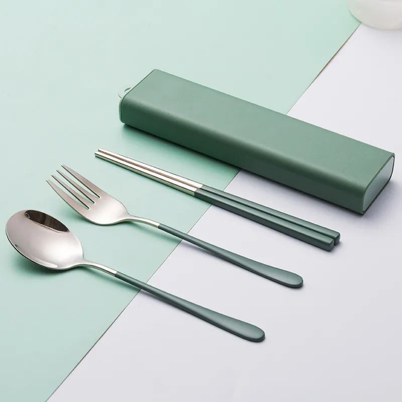 304 Fork Spoon Chopsticks Tableware Portable Storage Box Set: Practical, Elegant Dining on the Go