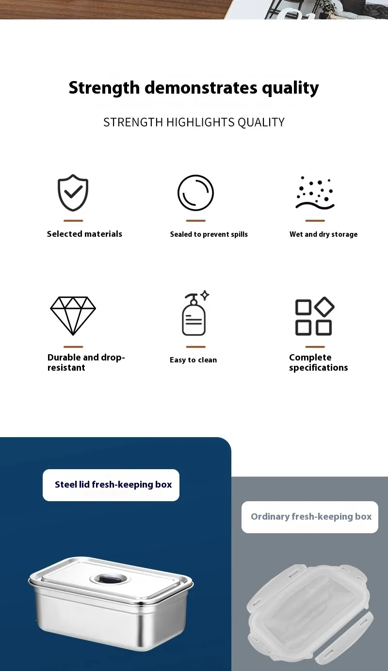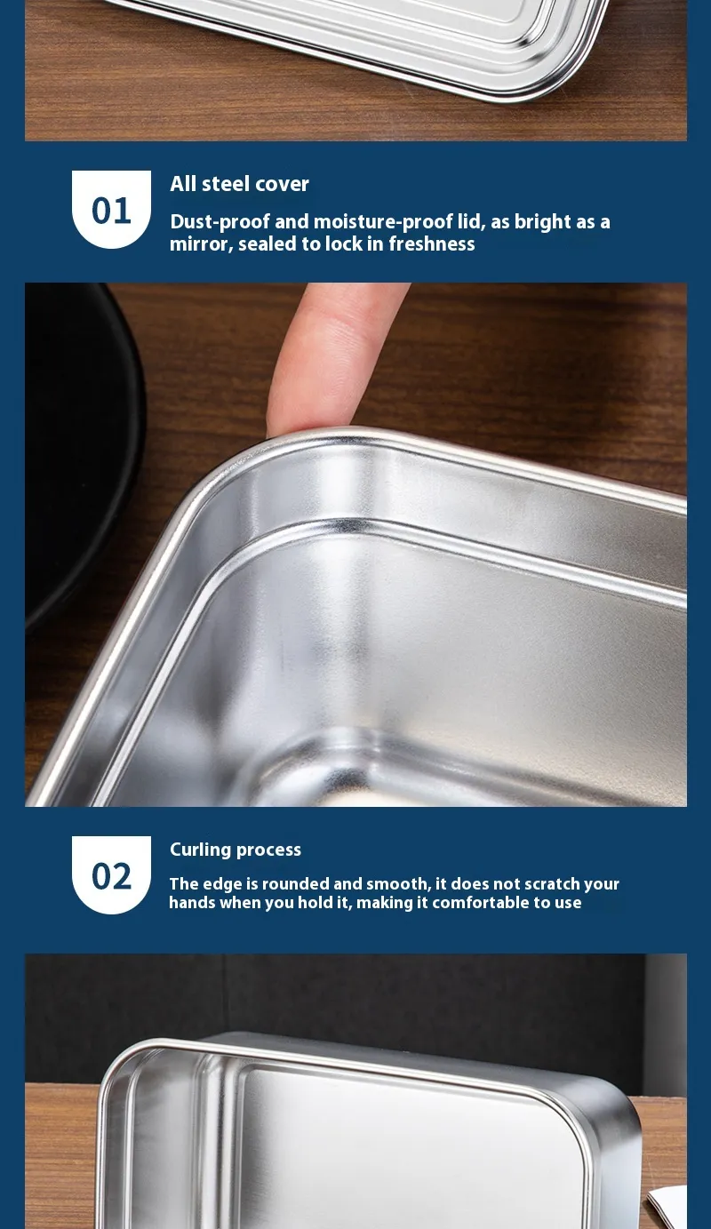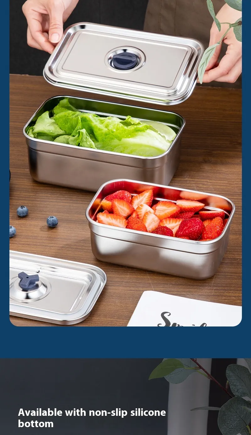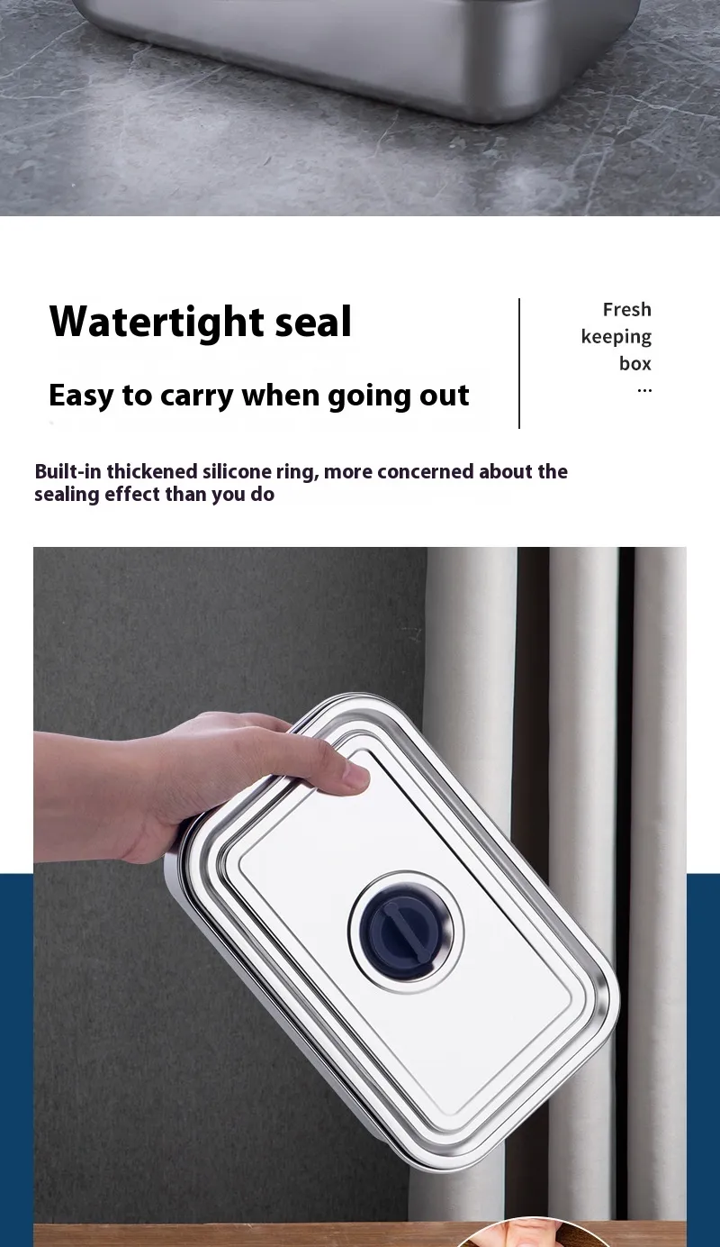 Designed with food preservation in mind, the 304 Stainless Steel Crispy Food Grade Lunch Box is perfect for storing crispy foods like chips, crackers, and sandwiches, maintaining their freshness and crunch. The airtight lid helps to keep moisture out, ensuring that your food stays as fresh and crisp as when you packed it. This makes it the perfect storage solution for salads, sandwiches, and any food you want to keep crisp and dry.