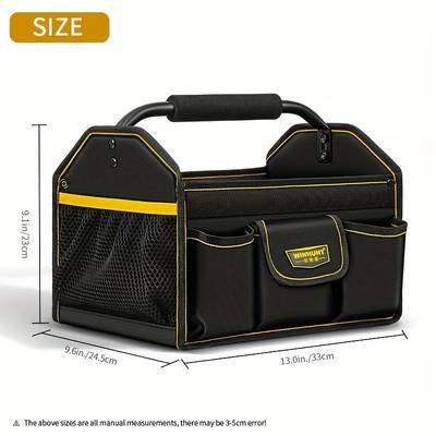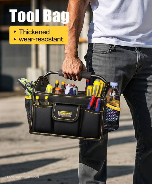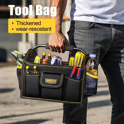 The bag's steel handle provides a sturdy grip, making it easy to carry heavy tools, while the wear-resistant fabric ensures that it will last through tough conditions. Whether you're working on-site, in your garage, or transporting tools between locations, this tool bag offers the durability and organization needed for the job.