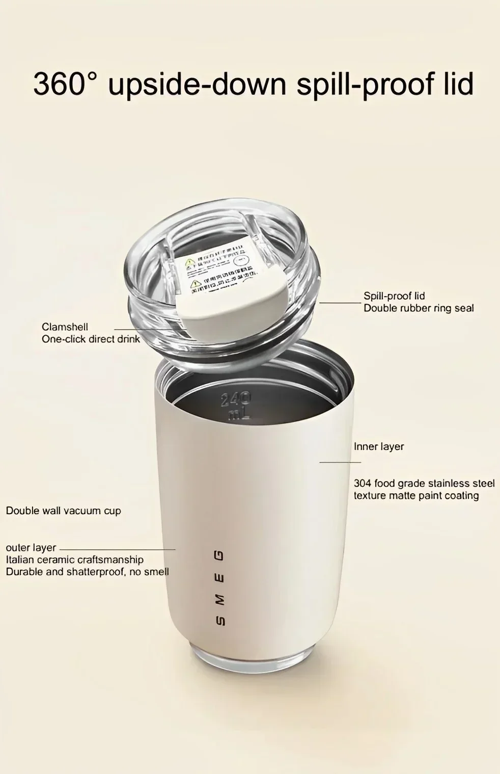 With a 350ml capacity, this SMEG water bottle is compact and perfect for a single serving of your favorite beverage. The double-wall