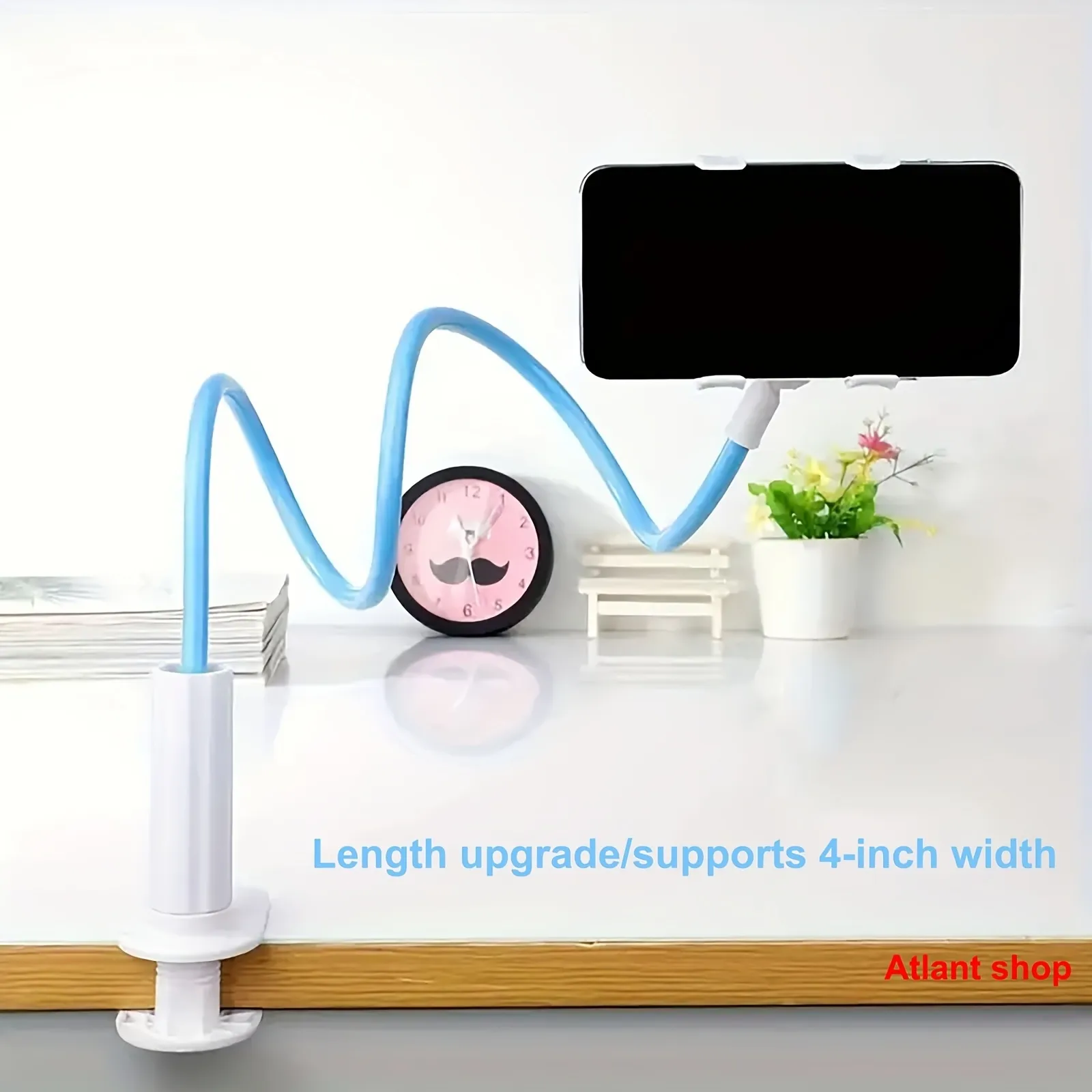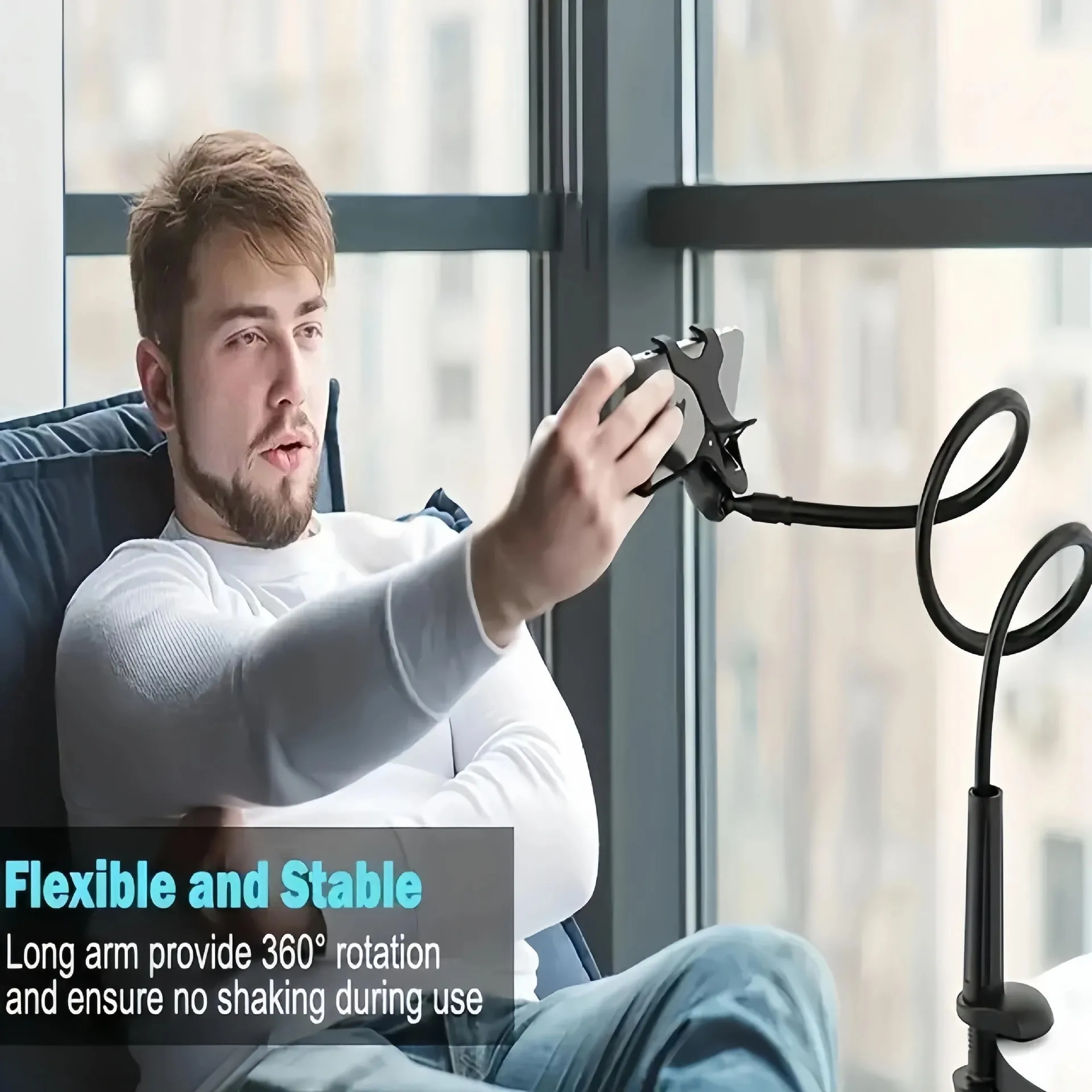 Built from high-quality, durable materials, this stand features a spiral base that ensures stability on any flat surface. Its 360° rotation and flexible arm provide maximum adjustability, allowing you to position your device at the perfect angle for comfortable viewing. Lightweight yet robust, it’s suitable for home, office, or travel use.