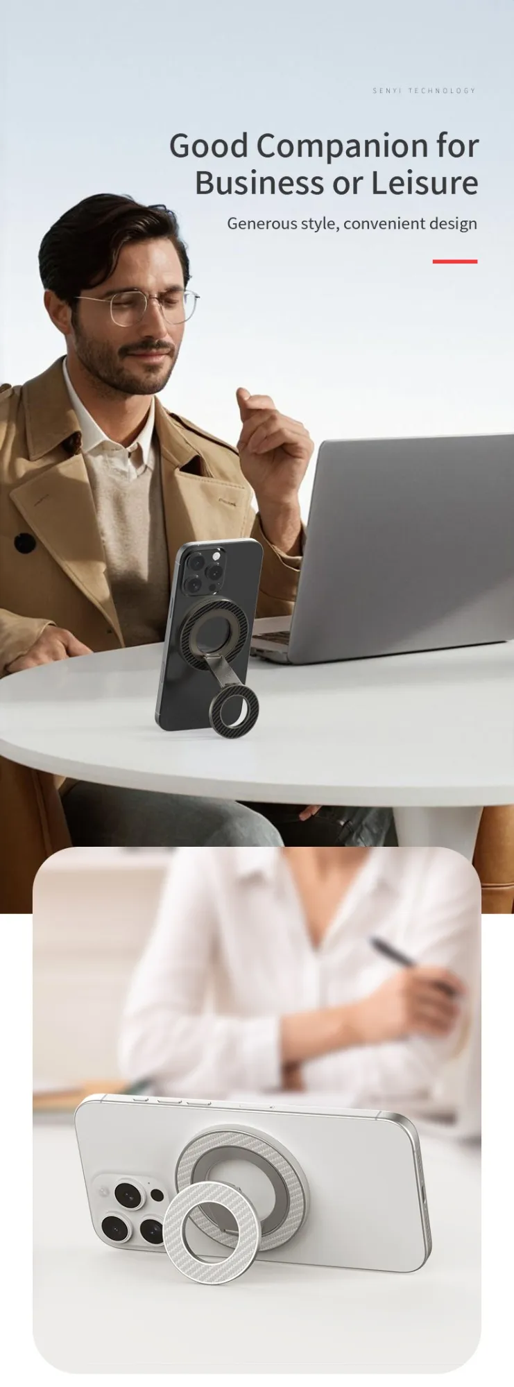 - 🧲 Double-sided magnetic fastening – secure and stable phone hold