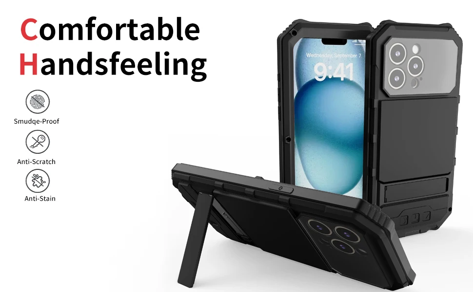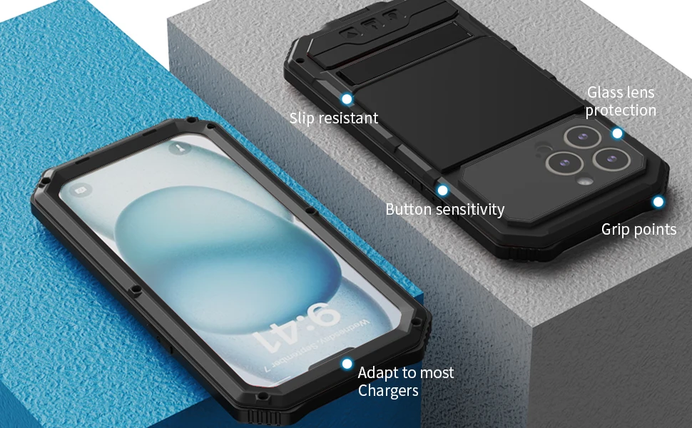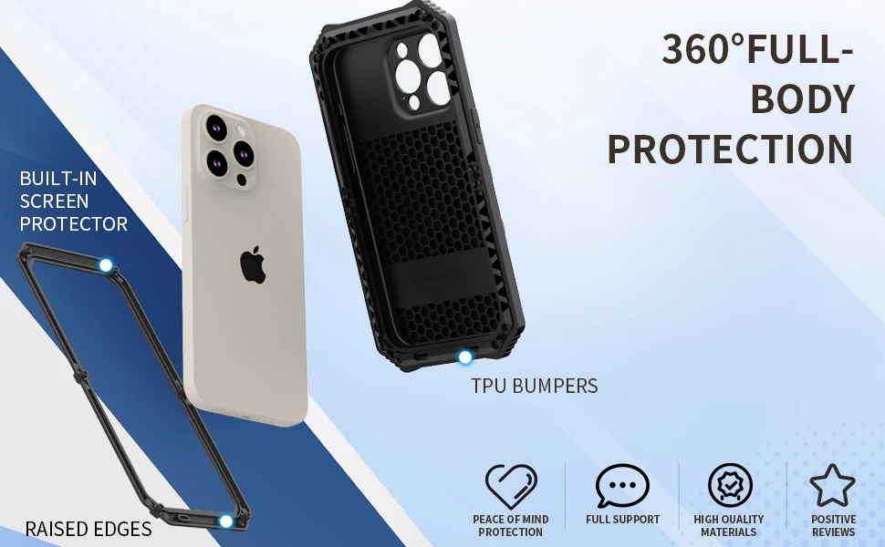 The 360 Meta Armor heavy duty phone cover is designed for all variants of the iPhone 15 series, including the iPhone 15, iPhone 15 Plus, iPhone 15 Pro, and iPhone 15 Pro Max. This case features built-in screen and lens protection, ensuring your device remains shockproof and secure. Ideal for providing maximum defense against drops, impacts, and everyday wear and tear