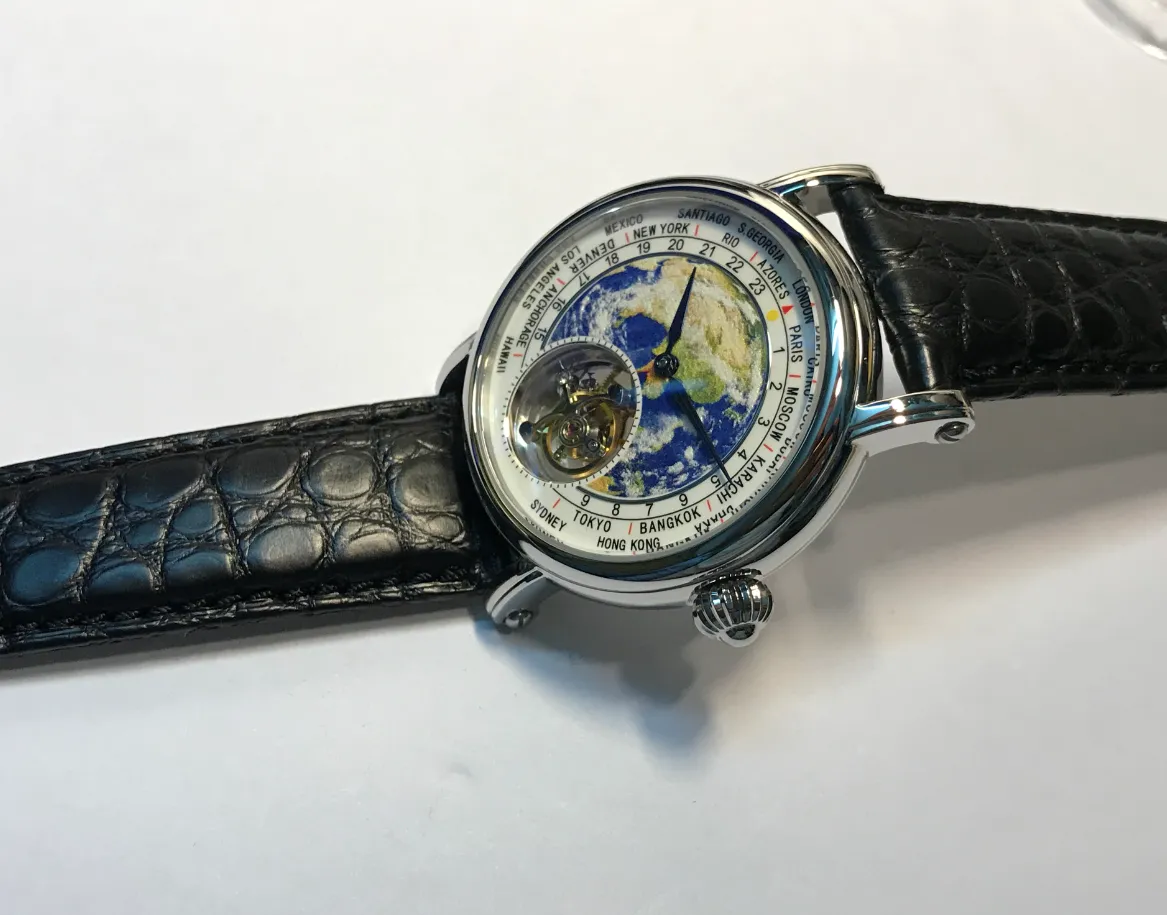 3D Globe Tourbillon Round Watch Fashion