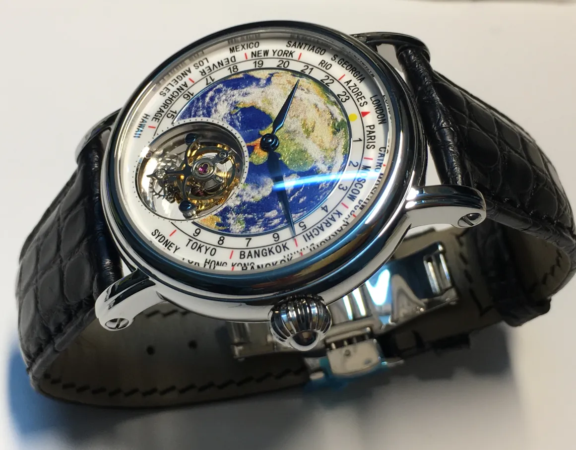 3D Globe Tourbillon Round Watch Fashion