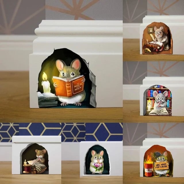 3D Mouse Reading Book in Mouse Hole - Wall Decal Sticker