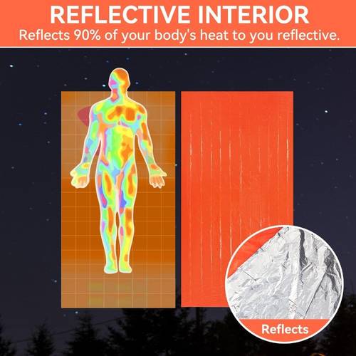 Synthetic fiber thermal blanket helps retain body heat for warmth.