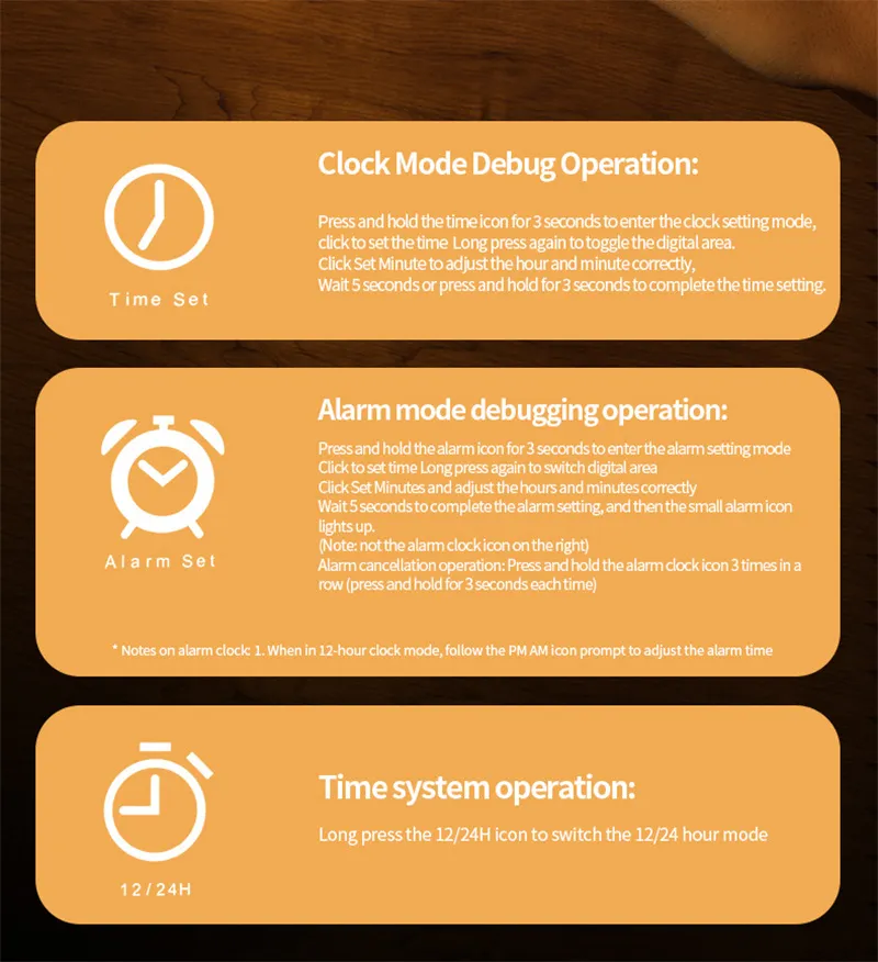 - Set alarms using the digital clock interface.