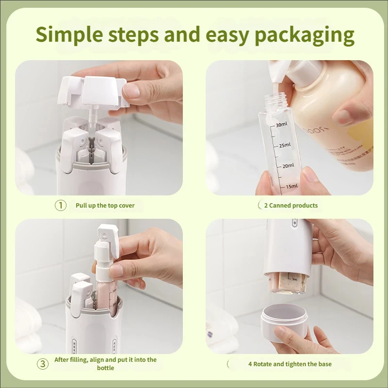 The 4-in-1 Travel Dispenser Bottle stands out because it combines organisation, safety, and ease of use in a single travel-ready solution. Instead of juggling multiple mini bottles, you get a unified system that keeps products separated and accessible.