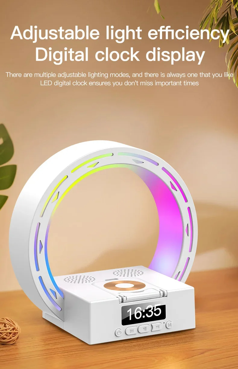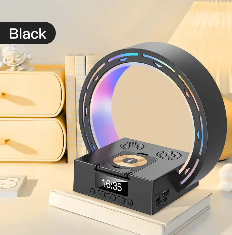 - Multifunctional Design: Combines a wireless Bluetooth speaker, wireless charging pad, bedside lamp, and alarm clock with wake-up light.