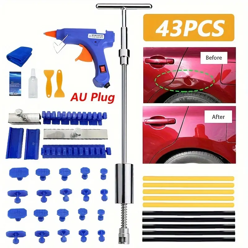 43PCS 2 In 1 T-Shaped Dent Puller Car Dent Repair Tool Kit with Glue Gun for Paint