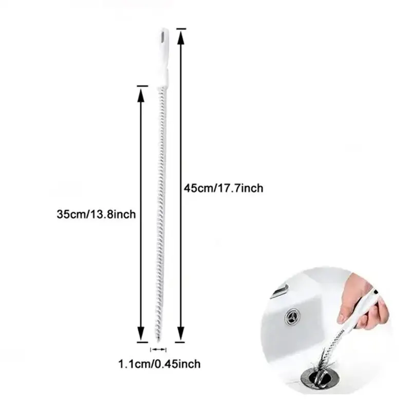 The 45cm length allows for optimal reach, making it easy to clear out hard-to-reach areas in kitchen and bathroom drains. The cleaning brush tip effectively grabs and removes hair, dirt, and other debris that can accumulate over time, ensuring a thorough clean. This tool is ideal for homeowners looking for an eco-friendly, cost-effective solution to keep drains clog-free. Lightweight and reusable, this unclogger is a practical addition to any home cleaning toolkit.