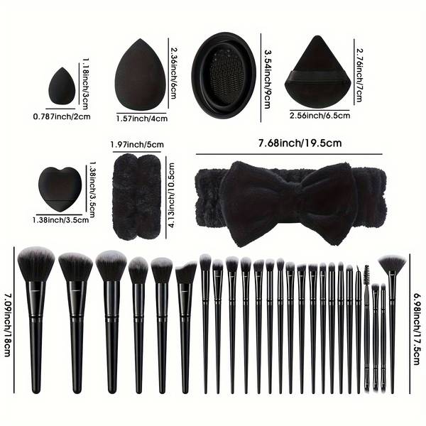 This 45pcs Makeup Tools Set is an all-in-one beauty kit designed for beginners, makeup lovers, and daily users who want a complete set of tools for flawless application. With 25 makeup brushes, multiple sponges, powder puffs, a brush cleaning tool, and even a hairband and hand bowl straps, this kit covers every step of your makeup routine—from foundation and powder to eyeshadow, contour, and blending.