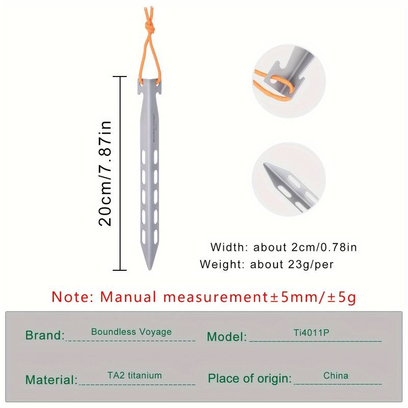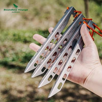 Perfect for outdoor enthusiasts, campers, and anyone who enjoys a stable, secure tent setup during their adventures. Whether you're camping in rugged terrain or need extra stability in windy conditions, these 4pcs Pure Titanium Ground Stakes offer unmatched durability and convenience. Their lightweight, robust design makes them a must-have for any outdoor gear collection.