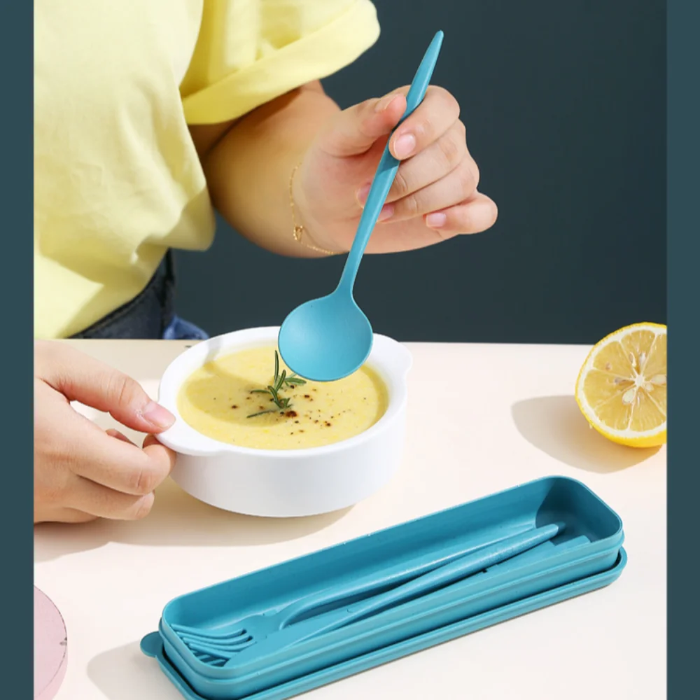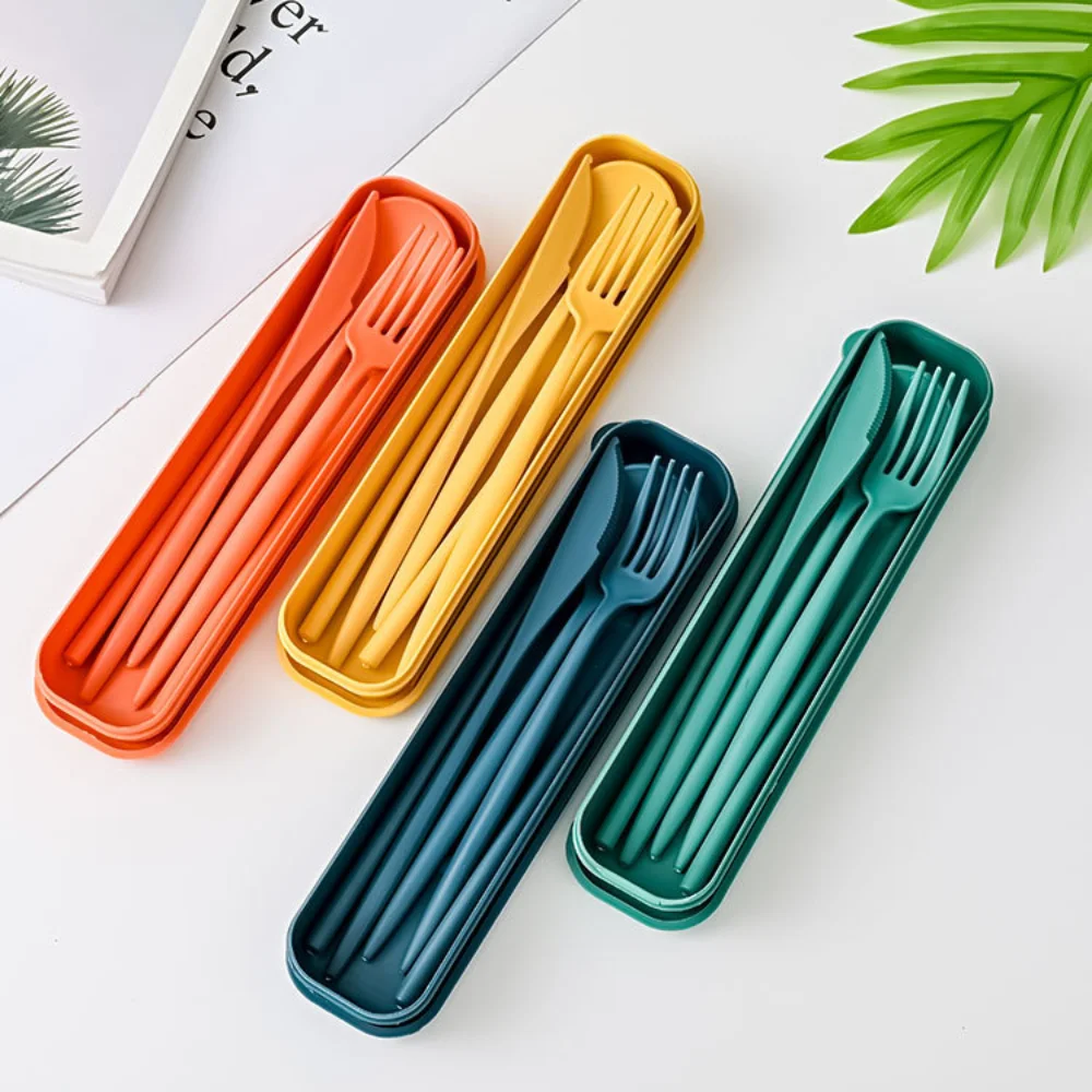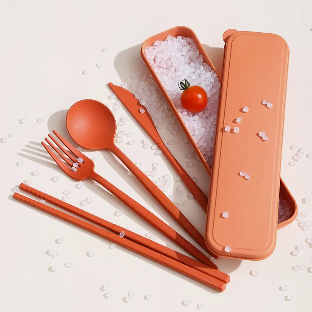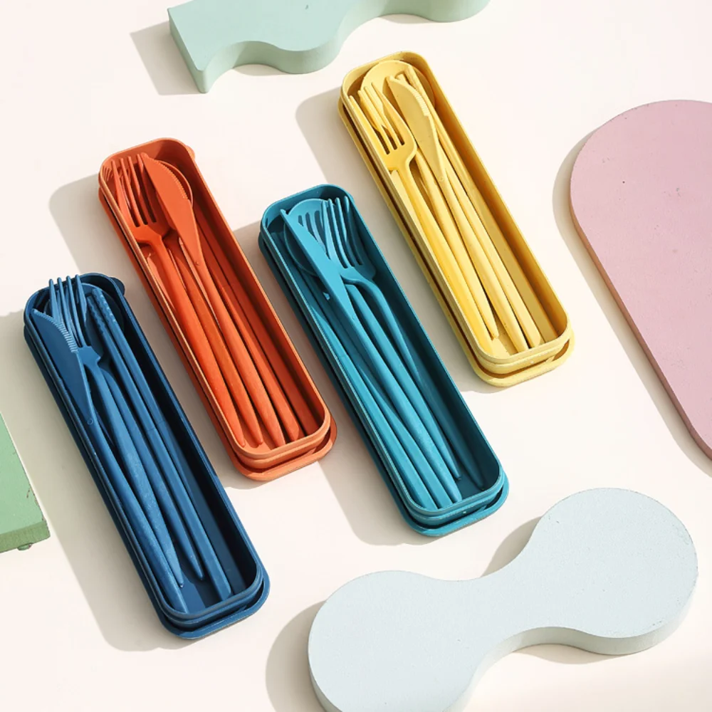 Benefits of the 4Pcs Wheat Straw Dinnerware Set Portable Tableware Knife Fork Spoon Eco-Friendly Travel Cutlery Set Utensil Box Chopsticks Set