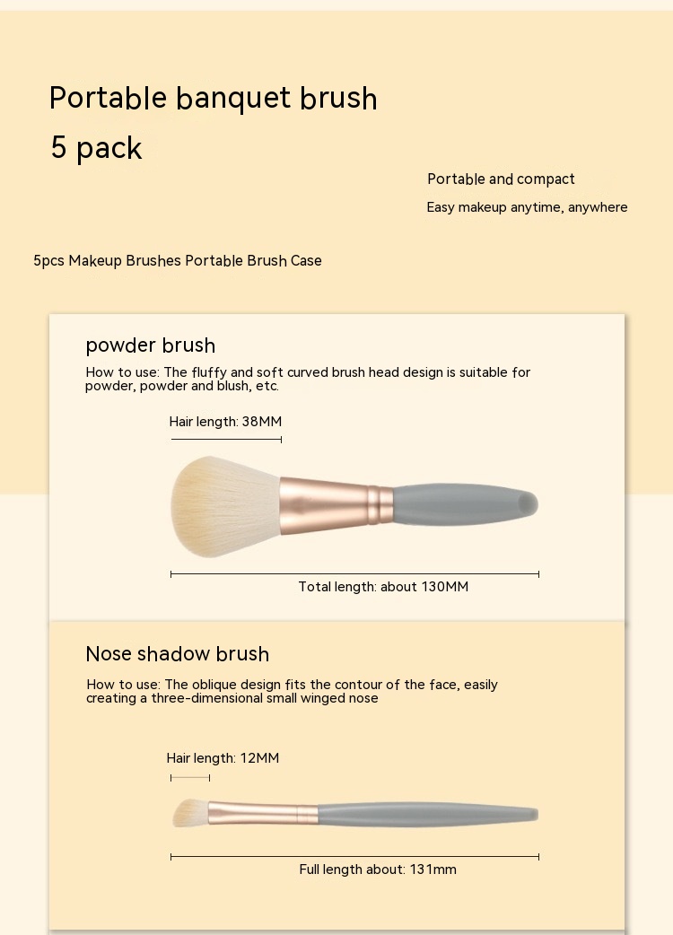 Complete 5-Piece Set: This set includes five essential makeup brushes: a powder brush, blush brush, eyeshadow brush,