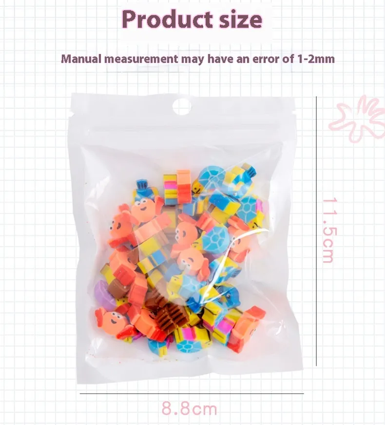 Made from high-quality, eco-friendly materials, these erasers are durable and safe for children, with smooth edges to avoid any harm during use. Perfect for gifting or classroom supplies.