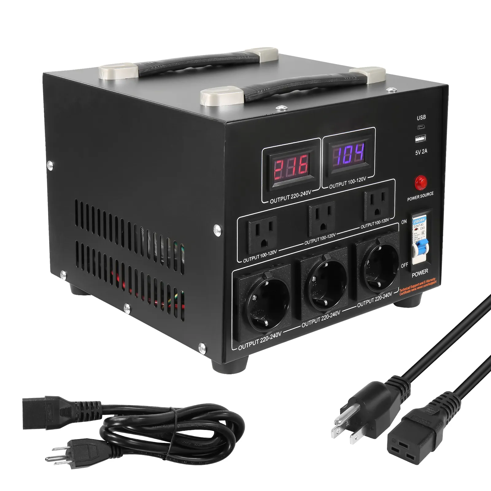 5000W Power Capacity: With a capacity of 5000 watts, this transformer can handle high-power devices, including industrial