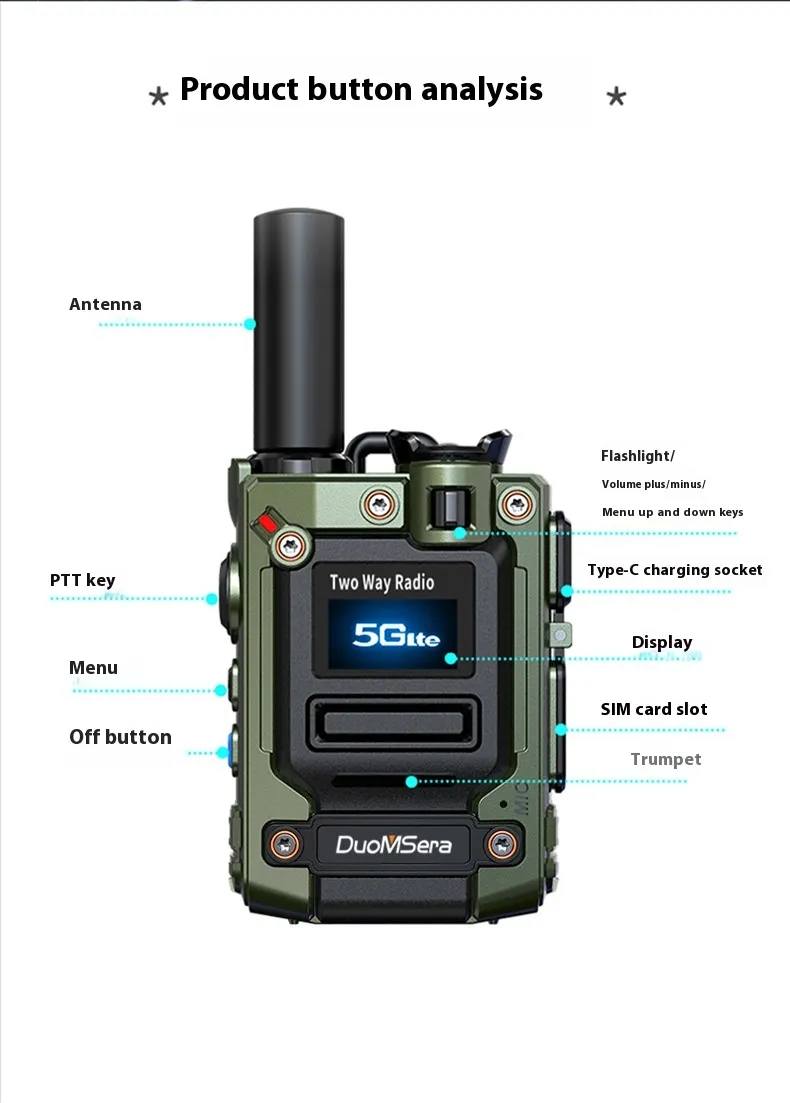 What sets this device apart is its combination of advanced 5G connectivity, long-lasting battery life, and rugged construction. Whether you're navigating the wilderness, traveling for business, or coordinating large projects, this walkie talkie offers the reliability and clarity you need to stay connected. It’s the perfect tool for individuals who require consistent and clear communication without relying on traditional cellular networks.