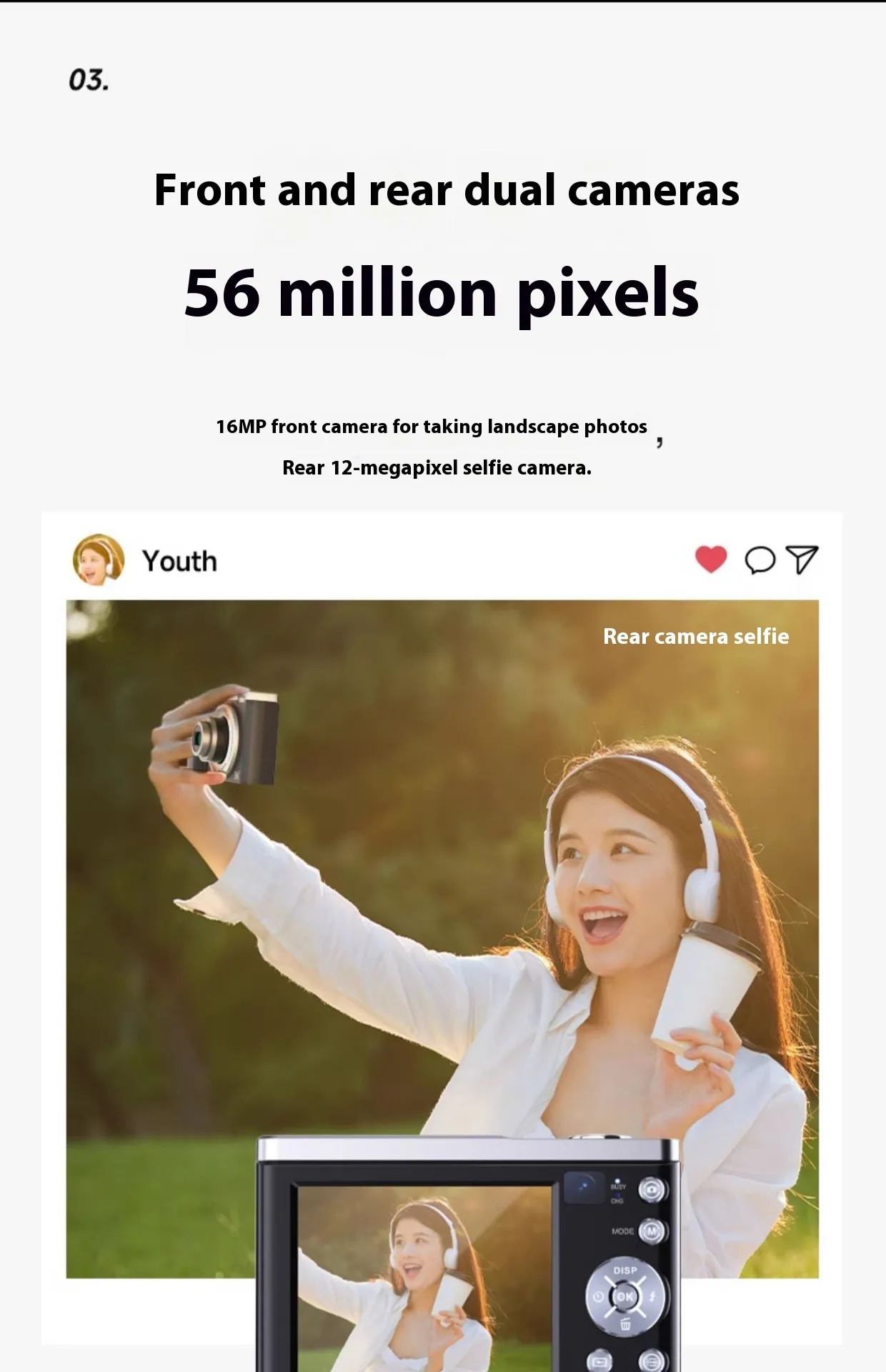 The 5K HD Shooting Digital Camera is the perfect tool for photographers and videographers looking to capture stunning visuals with exceptional clarity. Featuring an impressive 5K resolution, this camera delivers sharp, vibrant images and ultra-high-definition video, ensuring that every detail is captured with precision. The optical zoom function allows you to get closer to your subject without sacrificing quality, while the anti-shake technology ensures that even handheld shots are free of blur. Whether you are shooting landscapes, portraits, or fast-moving subjects, this camera excels in providing professional-grade results.