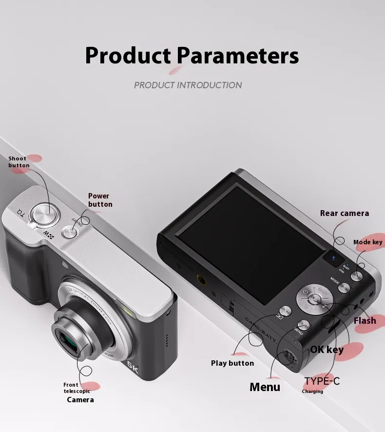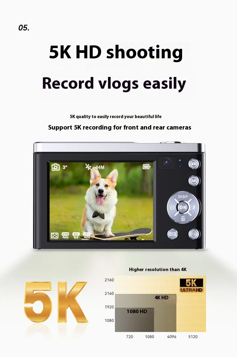 The camera's sleek and compact design makes it easy to carry, and its durable build ensures that it can withstand the rigors of outdoor photography. The long-lasting rechargeable battery supports extended shooting sessions, while the expandable memory slot ensures you have plenty of storage for your high-resolution photos and videos. Whether you’re a professional photographer or an enthusiast looking for an upgrade, the 5K HD Shooting Digital Camera offers the perfect combination of advanced features, user-friendly controls, and outstanding image quality.