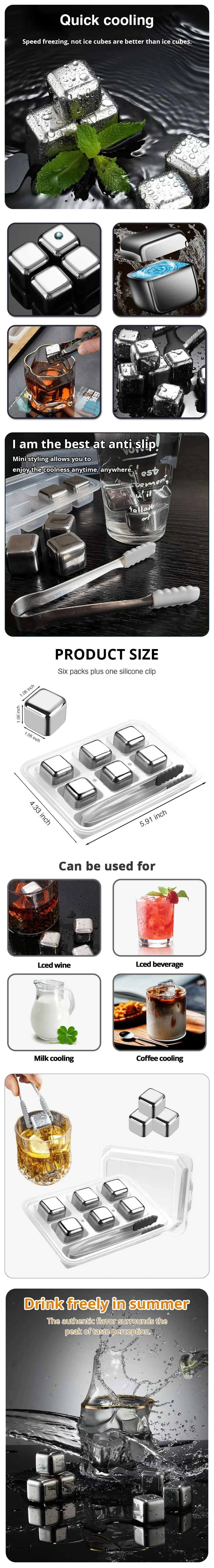 • Stainless Steel Material :Made of durable stainless steel, these ice cubes are rust-resistant and long-lasting.