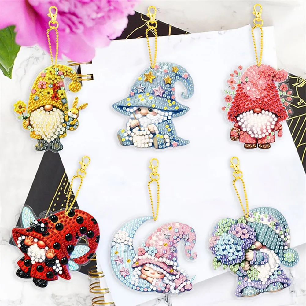 6 Pieces Diamond Painting Acrylic Material Keychain