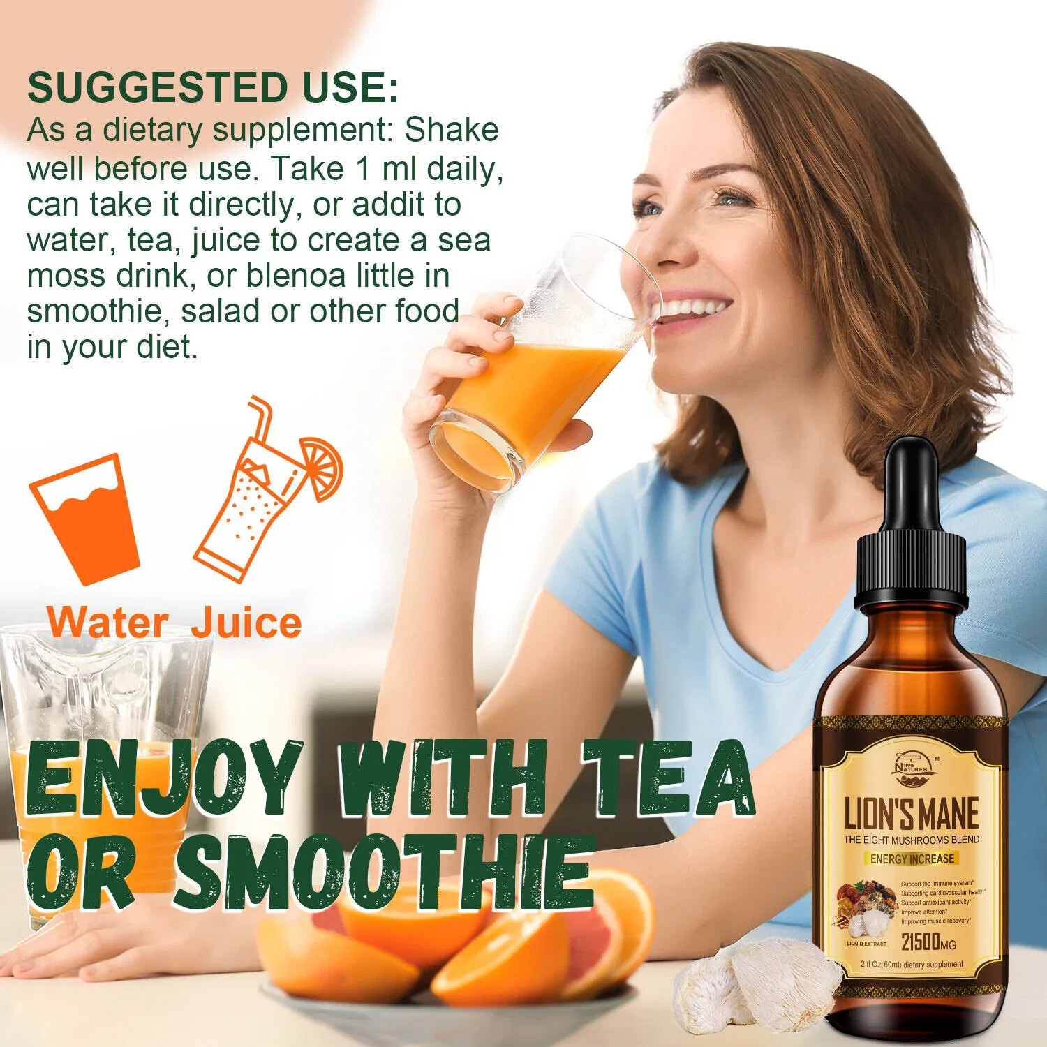 60ml Lion Mane, Chaga Mushroom Complex Reishi Extract Liquid Herbal Drops