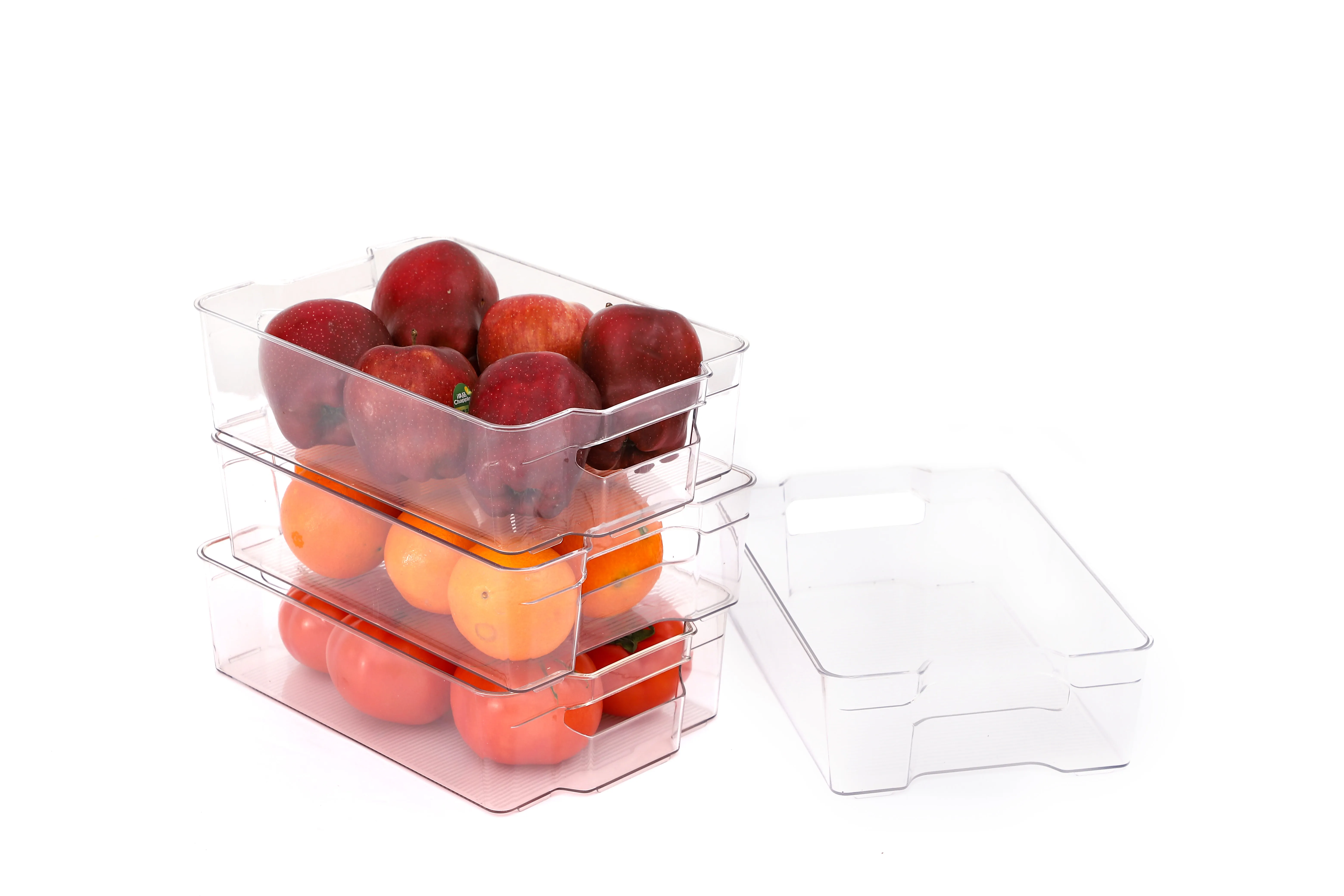 The base of each bin features a non-slip design, ensuring the bins stay securely in place even when the fridge door is slammed shut. This feature helps prevent the bins from sliding around, keeping them in their designated spot and preventing spills.