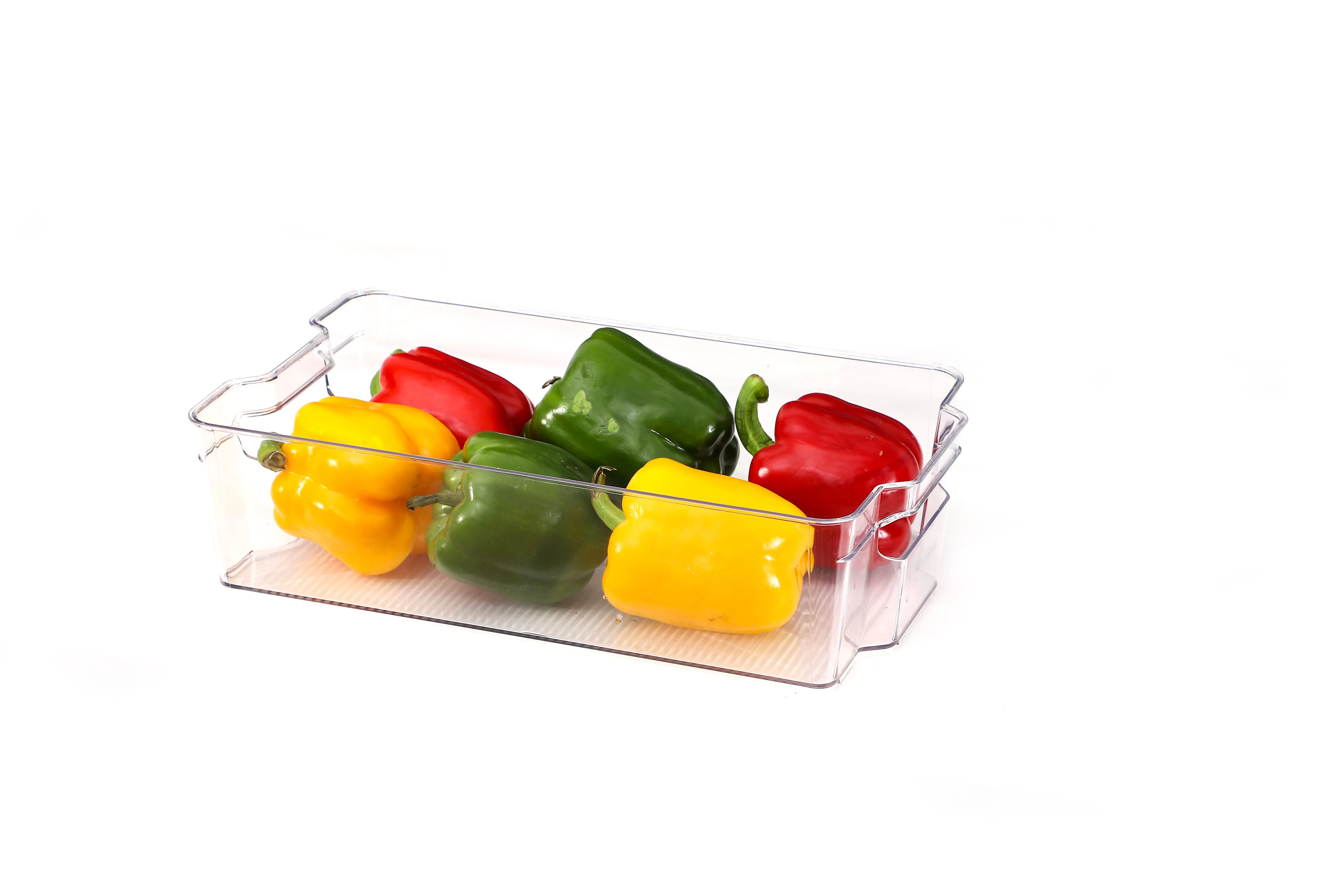 The base of each bin features a non-slip design, ensuring the bins stay securely in place even when the fridge door is slammed shut. This feature helps prevent the bins from sliding around, keeping them in their designated spot and preventing spills.