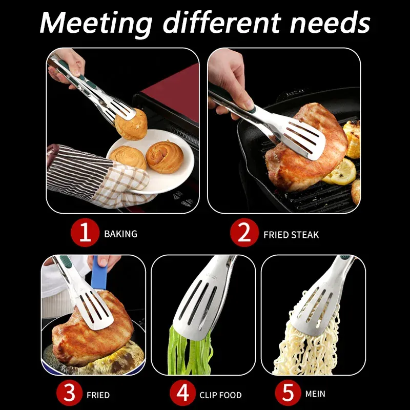 7 9 12inch Kitchen Tongs 304 Stainless Steel Grill Tongs For Cooking BBQ Non-Slip Salad Tongs Clips Tong Kitchen Accessories