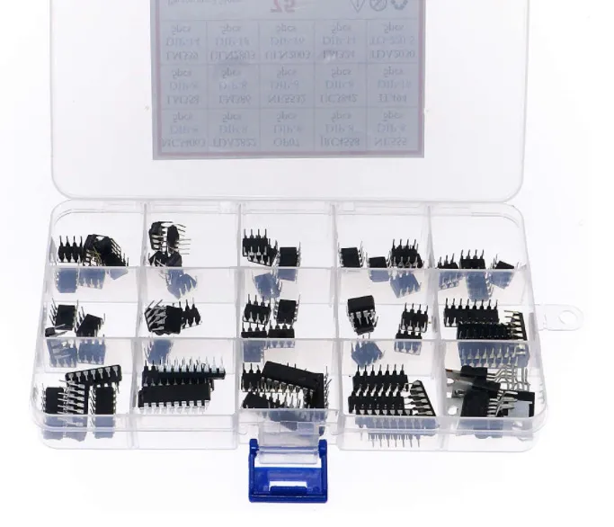 The 75pcs Universal DIP IC Kit is the ultimate collection for anyone working with electronics, circuit design, or DIY projects. This comprehensive kit contains 75 essential Dual Inline Package (DIP) ICs, designed to provide everything you need for your electrical engineering, prototyping, and soldering needs. Whether you're a beginner, hobbyist, or experienced technician, this kit offers a convenient, organized solution for your IC component needs.