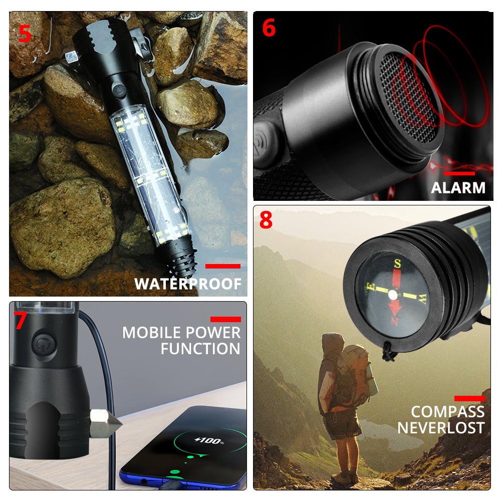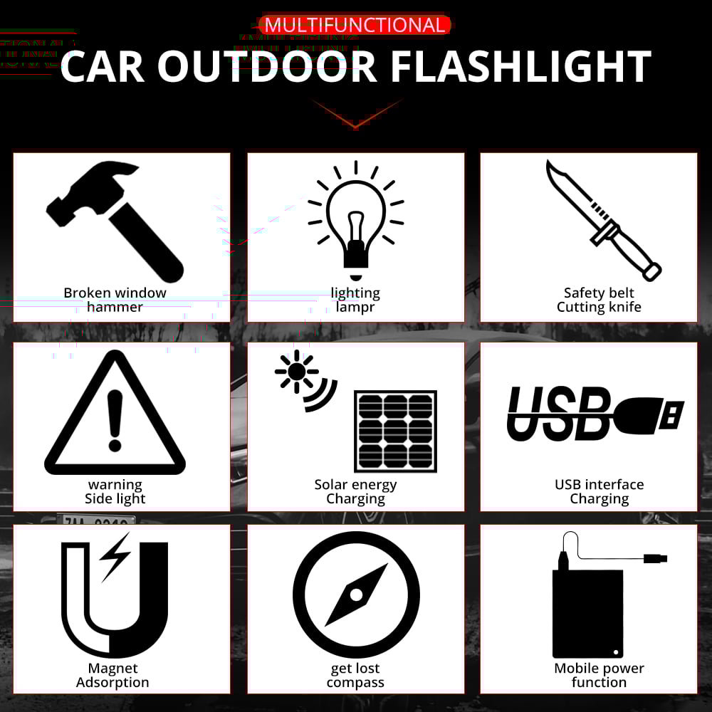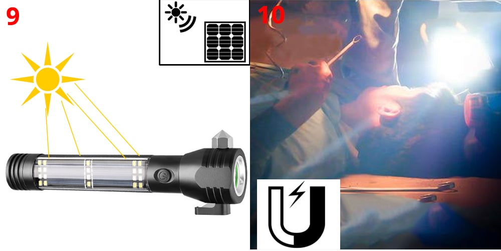 9-In-1 Solar Power Multi-Function Tactical Flashlight