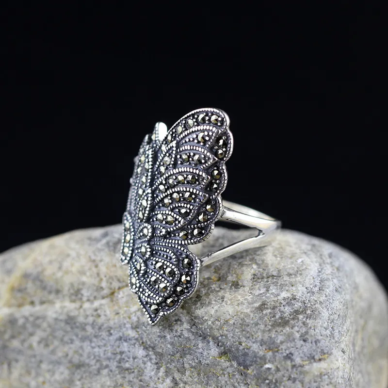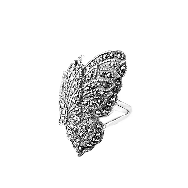 925 Female Butterfly Opening Ring Set With Maksai Stone Is Simple
