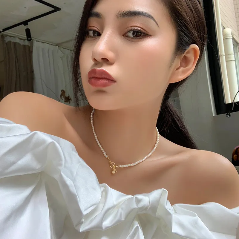 925 Silver French Light Luxury Necklace Pearl OT Buckle Clavicle Chain