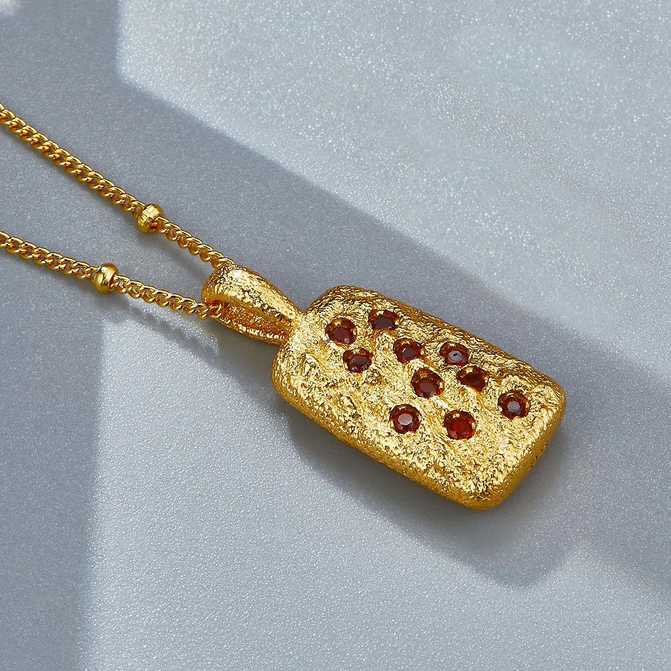 Crafted from 925 sterling silver, this necklace is built to last. The silver is carefully polished to a high shine, and the garnet is securely inlaid, ensuring that the necklace is both durable and beautiful. The natural garnet stones used are carefully selected for their rich color and brilliant shine, making this piece a true work of art.