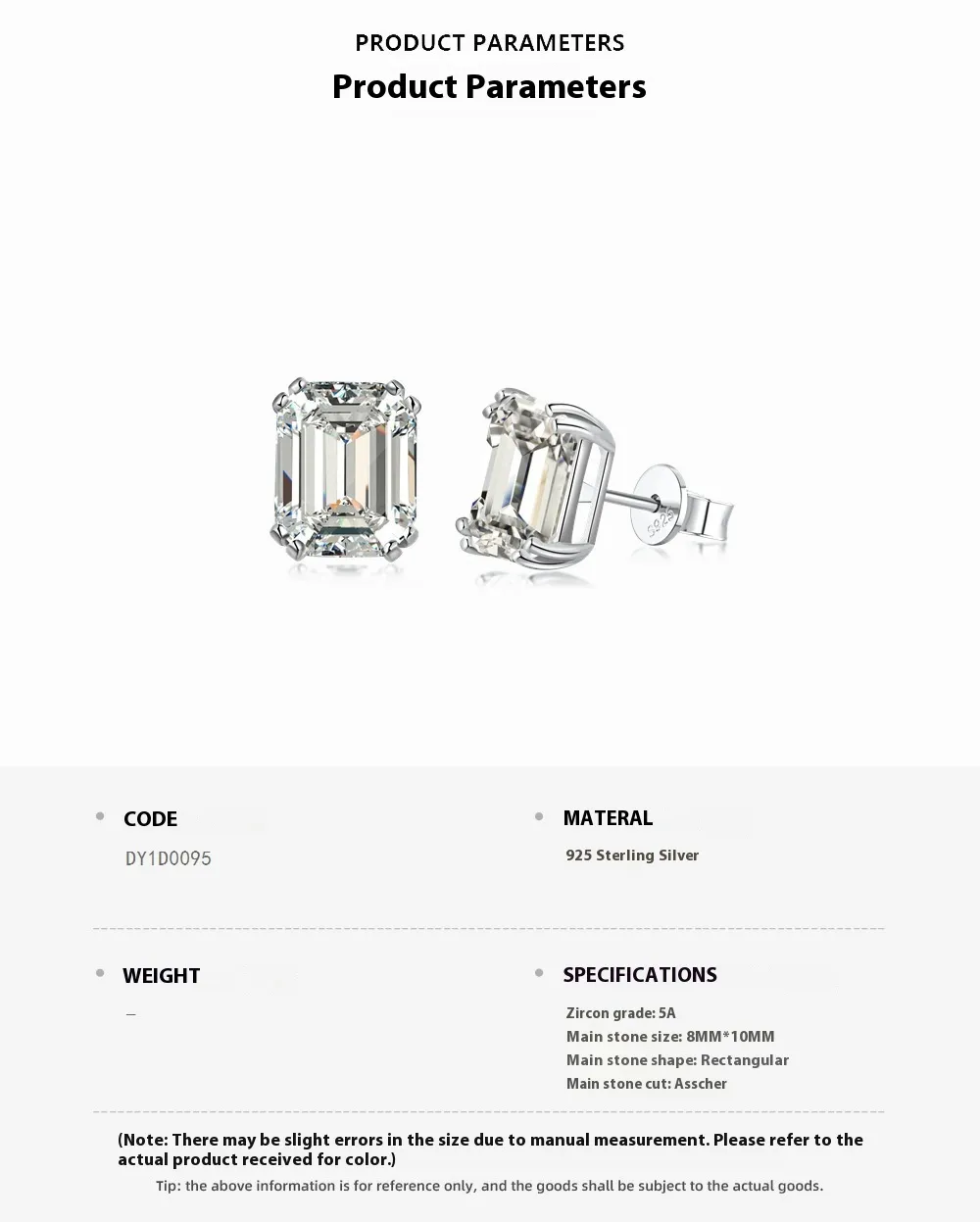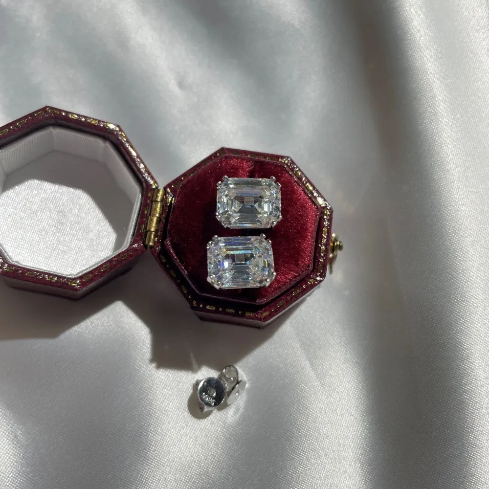 925 Sterling Silver Emerald Cut Stud Earrings Ornament
