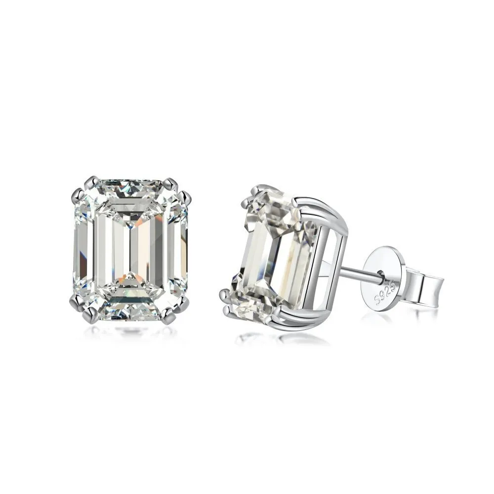 925 Sterling Silver Emerald Cut Stud Earrings Ornament
