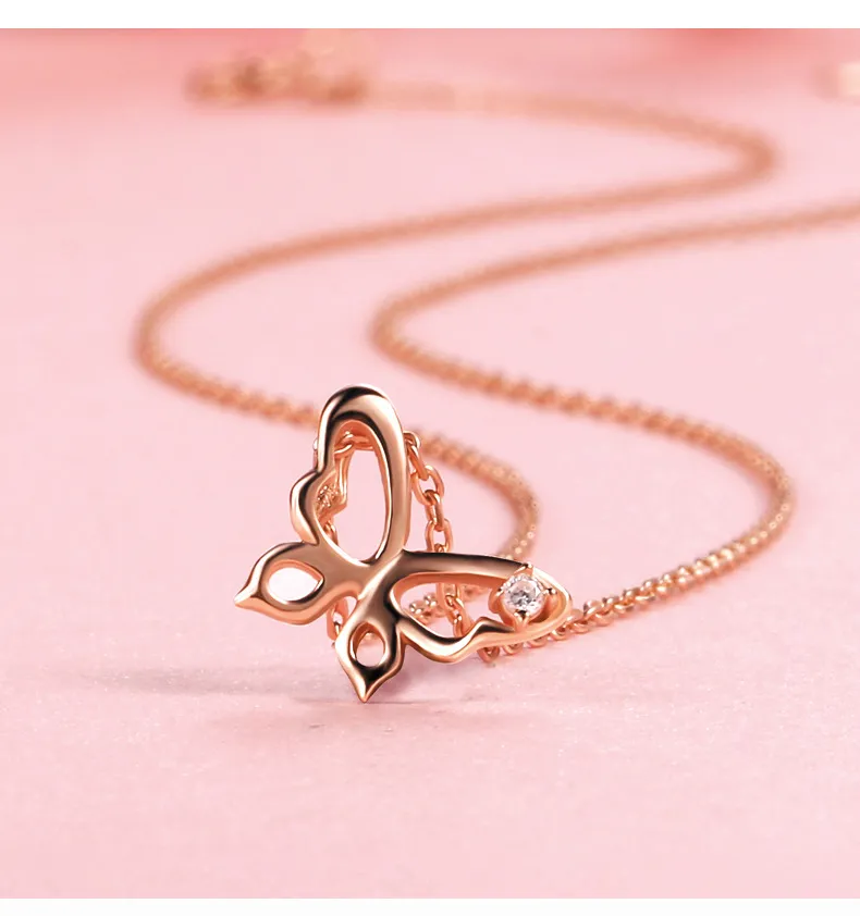 925 Sterling Silver Hollow Butterfly Rose Gold Female Fashion Niche Light Luxury Clavicle Chain