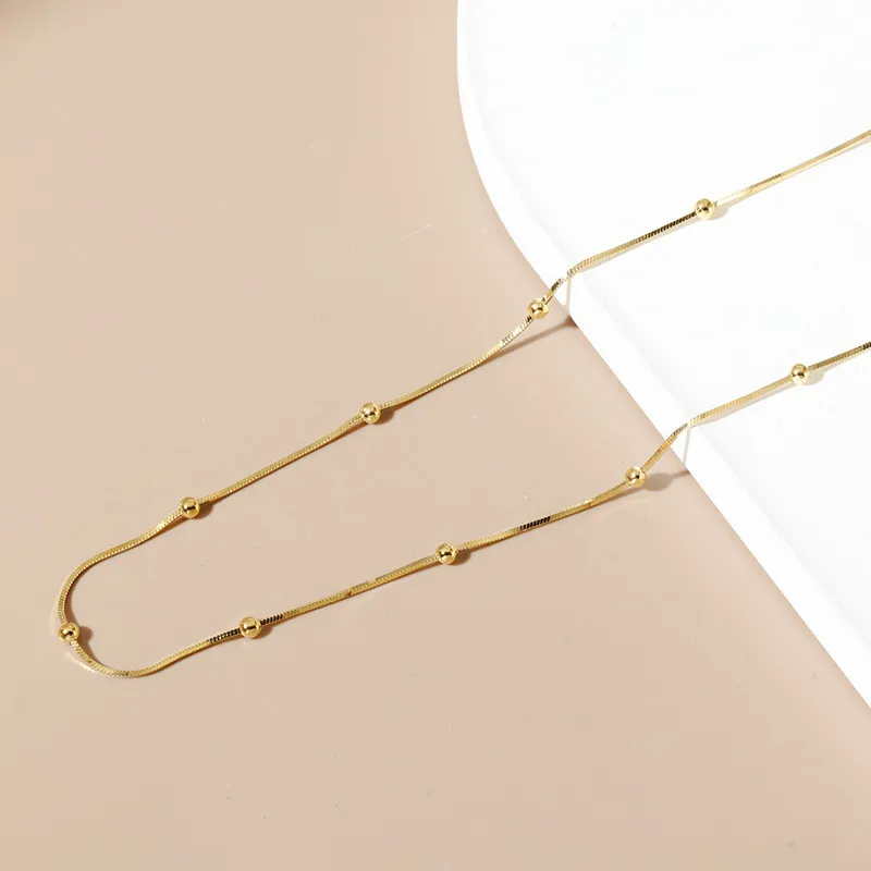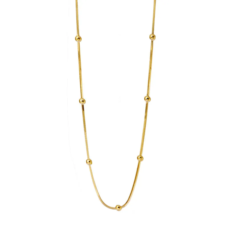 - Dual Chain Design: The necklace combines two unique chain styles—a ball chain and a snake bones chain. The ball chain adds a playful and textured look, while the snake bones chain offers a sleek, smooth, and fluid design. This combination creates a balanced, sophisticated, and modern accessory.